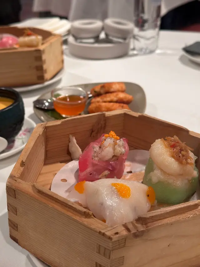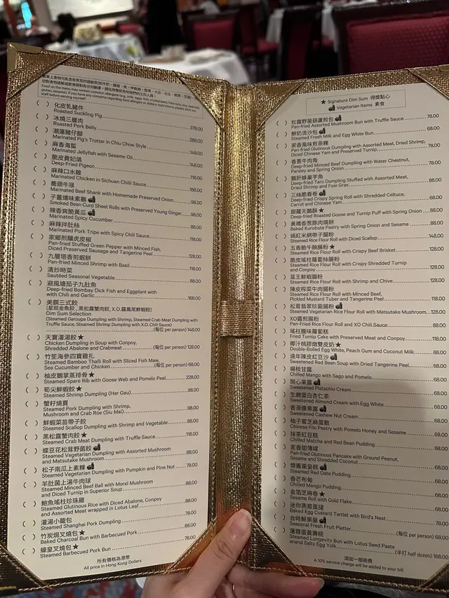 🐑化皮乳豬,整體發揮出色,好食過好多地方嘅乳豬。即叫即燒,起碼等20分鐘。等待係值得嘅。首先想講講個乳豬醬,唔知咩牌子,特別好食。乳豬皮化呢個冇質疑,咬落去啲豬油爆出嚟嗰下感覺好難忘,就連塊肉都咁好食呢個就實在難得🐑香蔥牛肉角,其實用餃皮包住牛肉球炸。牛肉球內有蔥、芫荽、馬蹄,調味恰到好處。記得點埋旁邊嘅牛肉汁一齊食,牛味100分爆發🐑黄橋燒餅,外皮酥化,芝麻香脆,香蔥肉餡飽滿,但調味略為重手咗少少。黄橋燒餅都係阿一鮑魚嗰個稍勝🐑筍尖蝦餃,大隻、飽滿、精神,個名強調筍尖就堅係有筍尖,明蝦新鮮爽口。價錢同阿一鮑魚一樣,但就冇阿一蝦餃嗰啖汁。蝦餃嚟講,暫時都仲係阿一世一🐑瑤柱蘿蔔糕,蘿蔔味甚濃甚清甜,切到咁大粒,四方八面都煎到咁香脆,睇得出廚師超用心。表面炸咗嘅瑤柱絲超脆,但可惜冇乜味😂。要比較的話,新同樂嘅蘿蔔糕更出色,因為更多臘味…查看更多