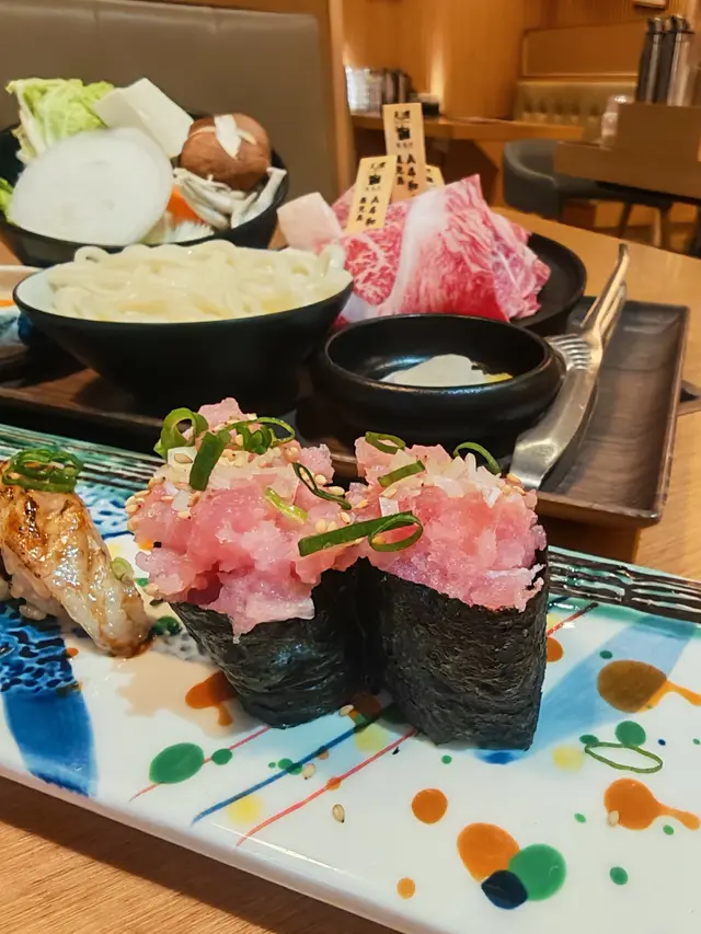最近睇 社交平台 留意到尖沙咀一間樓上餐廳,日式居酒屋風格裝潢,無論聚餐或約會都非常合適,輕鬆嘆盡最愛的日本料理!餐廳主打壽喜燒🍲,壽司🍣及刺身。最吸睛的是期間限定的【佐賀和牛祭】,以肉眼、肩胛、西冷為主,數量有限賣完即止。最後揀了肩胛肉,感覺牛味會更出眾。 ⦁佐賀A4黑毛和牛肩胛套餐🍲包括130g和牛肩胛(大約7-8塊)、漬物前菜(柚子醃蘿蔔)、蔬菜拼盤、香蔥溫泉蛋飯、以及日本雞蛋。按餐廳提供的煮法,香煎後肉味香濃,油脂分布豐富。其後再用上昆布湯製作shabu shabu,湯底夾雜和牛肉香,十分惹味。整體來說,和牛肩胛肉有種入口即溶的感覺。 ⦁壽司🍣除了壽喜燒套餐外,還點了幾款壽司,包括鮮甜的赤蝦壽司、焦香的穴子壽司、火炙三文魚壽司,以及拖羅軍艦、北海道海膽軍艦,整體不錯。 ⦁甜品🍨揀選味道濃郁香滑的開心果味雪糕,以及酸甜解膩的青檸雪葩。 ✨11月限定著數優惠1⃣夜鳥優惠20:30後入座可享有全單85折優惠 2⃣玩輪盤送食品每枱客人消費滿$300即可玩輪盤一次,$600可玩兩次如此類推。(平日20:30後、星期五、星期六及假期前夕沒有輪盤優惠) …查看更多