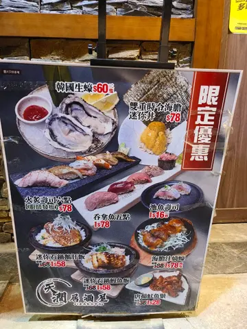 一間幾有日本風嘅居酒屋,裝修簡單但幾有feel,坐得都幾舒服,有吧枱、卡位同埋房間,適合一班朋友傾偈食飯。 晚市有幾多優惠,價錢算合理,可以試到唔同款式嘅嘢食。 吞拿魚五點拼盤($78)有齊大拖羅、中拖羅、赤身、炙燒同拖羅蓉軍艦,$78呢個價錢算抵食。大拖羅油脂夠,入口即化;中拖羅同赤身都新鮮,魚味濃。 火炙壽司六點($78)廚師即日揀料,炙燒過嘅壽司帶少少焦香,魚生仍然嫩滑,特別係鰈魚群邊,油香重,配醋飯幾夾。 A4鐵板和牛粒($68)牛肉粒煎得香,外脆內軟,咬落有肉汁,醬汁甜甜哋,連埋洋蔥食幾開胃。 迷你石鍋鵝肝飯($58)鵝肝煎得外脆內嫩,撈埋熱辣辣嘅飯同飯焦,口感豐富,味道濃郁但唔會太膩。 美國牛五花壽喜燒($1)晚市消費滿$80就可以加$1叫呢個壽喜燒,有菜、豆腐同牛五花,湯底甜鹹適中。追加豚肩肉($88)同烏冬($18)更加飽足。 飲品推薦($38)白桃同巨蜂梳打幾清爽,甜度適中,解膩一流。 食物質素唔錯,價錢合理,兩個人食到飽都唔使$500,算係元朗區幾抵食嘅日式居酒屋,可以再encore!…查看更多
