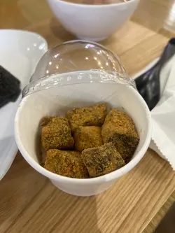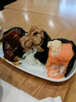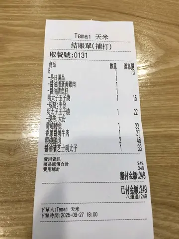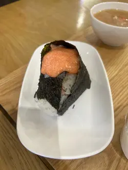 超強颱風要來了,梗係要去超市掃下貨,順便食埋嘢添啦。是晚就嚟到灣景廣場嘅天米,聽人講話呢間啲手握飯糰好好食,見佢有餐有散點價錢合理就試下先😋餐牌有十二款飯團同三款小食,叫餐可以跟湯跟甜品或者全部都要😆小店只有一名員工,由排隊落單到出餐都真係需要啲時間。點咗兩份最豐富嘅Set D,包括飯糰兩個加湯品加甜品,見薯仔沙律同玉子燒咁平,又每人加咗一客。朋友話望落個飯團唔大,於是佢又追加多一件,我心諗你係咪真係食到咁多嘢㗎😝⭐明太子沙律 & ⭐醬油漬芝士明太子先試明太子口味嘅飯團,明太子鹹香鮮味,下得很多,每一啖飯都食到明太子🤤朋友仲要加埋醬油芝士,嗰份鹹味更有層次,軟綿綿有香口,朋友話醬油漬芝士唔知點解感覺有啲似腐乳添😆⭐香蔥醬油牛肉 & ⭐醬油漬蛋黃 & ⭐醬油漬蛋黃雞肉碎第二件就係醬油漬蛋黃,味道濃鬱鹹香,有醬油同埋麻油味,蛋黃仲有蛋香添㗎。朋友就食佢升級版有埋雞肉碎,雞肉碎甜甜地,同鹹鮮嘅蛋黃混埋一齊又幾好食喎。最後就係試埋個香蔥牛肉,味道感覺有啲似得吉x家,好食都好食,但因為牛肉比較大塊,咬飯團嘅期間啲牛肉好容易鬆開,而跌到一碟都係😅呢款口味食得比較狼狽。⭐味噌豬肉湯湯品係味噌豬肉湯,入面除咗豬肉片,仲有洋蔥、薯仔、紅蘿蔔,飲到蔬菜嘅鮮甜,而且飲完唔口渴👍⭐薯仔沙律好喜歡食日式嘅薯仔沙律,鍾意佢個沙律醬混埋蛋黃,軟綿綿起曬沙,淡淡薯仔蓉好正,沙律醬唔酸又唔會水流流,好味又飽肚😋⭐明太子玉子燒玉子燒口感一般,正在上面有明太子醬,明太子醬真係配咩都特別好食。⭐QQ餅最後甜品係蕨餅,黑糖口味配上黃豆粉,口感Q彈香軟,甜度只係微甜,無日式和果子嗰種甜到膩嘅感覺,呢款啱口味,黃豆粉好香啊😋飯糰雖然望落唔大,但其實份量十足,一個都有成碗飯咁上下,呢餐真係超級飽,咁好食好滿足😍…查看更多
