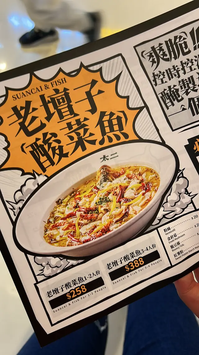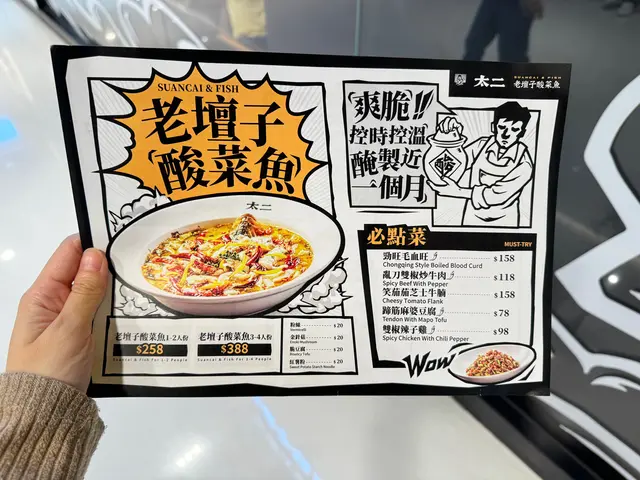 **太二酸菜魚食評:酸菜魚出色,服務貼心** 今次同屋企人去咗**太二酸菜魚**食飯,整體體驗幾好,尤其係佢哋嘅招牌酸菜魚,真係冇得輸!另外,當日我哋帶住初生BB,店員嘅安排同服務都令人覺得好周到,值得一讚。 **食物水準:酸菜魚必試,炒雞粒略嫌多骨** 1. **老壇子酸菜魚**——酸辣鮮香,魚肉嫩滑 酸菜魚果然係招牌,湯底酸辣適中,唔會太嗆喉,酸菜夠爽脆,仲帶少少甜味,好開胃。魚片份量足,而且冇骨,肉質嫩滑,吸晒湯汁嘅精華,配埋白飯真係一流! 2. **辣炒雞粒】——味道香口,但雞骨稍多** 雞粒炒得夠鑊氣,辣椒同香料爆得好香,雞肉都算嫩,不過略嫌有啲碎骨,食嘅時候要小心啲。如果可以用無骨雞肉,口感會更加好。 **服務:對帶BB嘅客人好體貼** 當日我哋推住BB車,店員主動安排咗寬敞嘅座位,仲幫忙擺好BB車,完全唔使擔心阻住其他客人。用餐期間,店員都好細心,見我哋要照顧BB,上菜同收碟都特別輕手,完全冇催趕感,服務態度真係加分! **總結:會再幫襯,推薦酸菜魚** 太二嘅酸菜魚確實出色,湯底同魚肉都做得好好,係必點之選。炒雞粒味道唔錯,但如果有無骨版本就更完美。另外,餐廳對帶小朋友嘅家庭好友善,服務細心,整體用餐體驗舒適,值得再嚟! **小建議**:如果炒雞粒可以改用去骨雞肉,食起嚟會更方便,尤其適合一家大細。