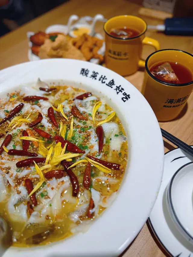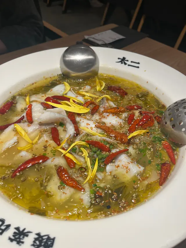 週末,一心帶父母去嘗新,走進裝潢年輕潮流的「太二」。他們看著牆上的趣味標語,眼神裡帶點好奇。服務員端上招牌老壇酸菜魚,碩大的白瓷碗中,熱氣蒸騰,一股酸爽鮮香的氣味瞬間撲鼻而來。金黃湯底,鮮紅辣椒與菊花瓣,視覺已是享受。我特地選了「少辣」,入口是溫和的酸鮮,花椒與辣椒的惹味層次分明,卻體貼地不嗆喉。魚片切得薄透,嫩滑無比;老壇酸菜清脆爽口,這濃郁的湯汁,用來送飯真是一流。父親吃得額頭微微冒汗,連聲說:「這湯底果然開胃。」母親細細品嚐著魚片,笑著點頭:「這魚肉很滑,味道真香。」看著他們滿足的神情,我心裡一陣溫暖。這頓抵食而味美的晚餐,不僅暖了我們的胃,更串起了一家子簡單而純粹的歡愉。離座時,母親還輕聲問:「下次再來,試試那個小食,好嗎?」…查看更多