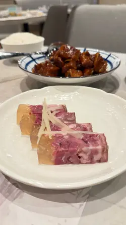 這個雞絲粉皮........ 1蚊你沒有看錯,是真的 1 蚊。太元樓每天都有一款特價菜式,晚市5:30後入座可享 + $1 加點一道美食﹗不要小看這個一元粉皮,份量是真的足。沒有將貨就價有別於常見的寬粉,它被切成一條條均匀的細條,質地柔韌又帶着几分Q彈,入口爽滑有勁。雞絲均匀地拌在粉皮中,肉質鮮嫩不嚡,併著同樣成絲的青瓜,軟中帶爽特別讚一讚那個切絲的手法~均勻幼細,我也很想學一手呢~ 妙齡乳鴿"妙齡" 這個名字很有年代感。新一代人估計也沒有多少人會用了 乳鴿因為價錢優惠, 所以只能堂食。每人限購一隻 我點了一隻,一開4,其實也有4份了。乳鴿的確是"妙齡", 不是那種中大鴿,外皮金黄油亮,散發着誘人的香气。肉質緊實却不嚡,滲滿了秘制滷汁的香味,咸香適中,讓人回味無窮,吃完後還忍不住舔舔手指。