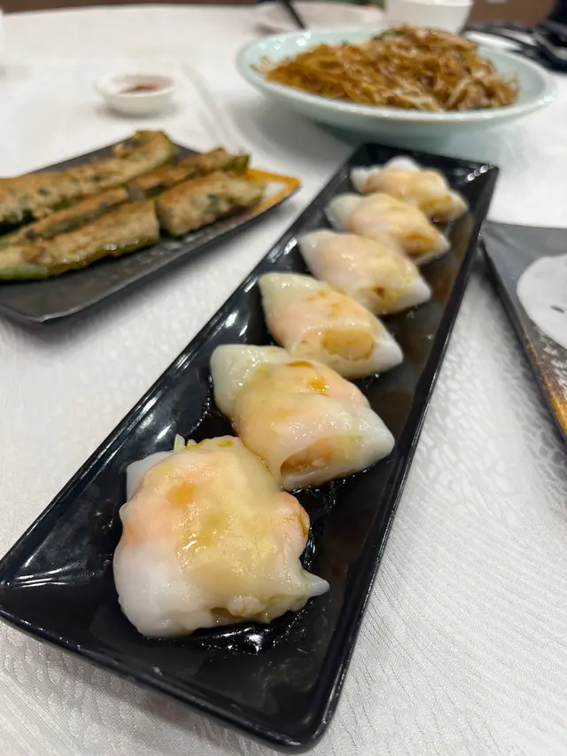 打風但係啲老人家都係要飲下茶。之前搭車經過見到呢一間酒家,咁就嚟試吓新嘢。差唔多下午茶嘅時候,前台好好可以早少少入座。一上就上過芝麻卷,凍凍地係有少少失望。不過後來上嘅食物完全超出預計範圍之內。除咗個鯪魚球係出事幫我哋取消咗。腸粉幾有良心,每件都有好大粒嘅蝦肉。另外個豉油王炒麵碟底冇油,炒得好乾爽,處理得相當好。另外呢度有蒸蘿蔔糕,呢啲比較傳統嘅點心真係好少有酒樓會籍,咁佢整得唔會散亦唔會太硬亦有蘿蔔味,但係就冇蘿蔔嗰種苦澀味,呢個都值得一讚。成餐下午茶最值得食嘅就係個豬膶燒賣,雖然佢怪怪地豬潤豬同燒賣內分開,但係我估計佢應該蒸完個燒賣然後先再蒸豬潤,食得出個豬潤好滑,酒香味都好重,呢個係重點推介。另外個豬油渣肉片麵,就偏淡口,不過就啱長輩食吓啲懷舊嘢。韭菜餃就爆餡,牛肉球陳皮味都幾出。魷魚鬚就係我唔鍾意嗰隻粉,不過裏便啲魷魚都夠嫩,唔會炸到好乾。呢餐下午茶,應該係近排嚟講飲茶最滿足嘅一餐。…查看更多