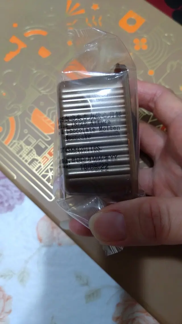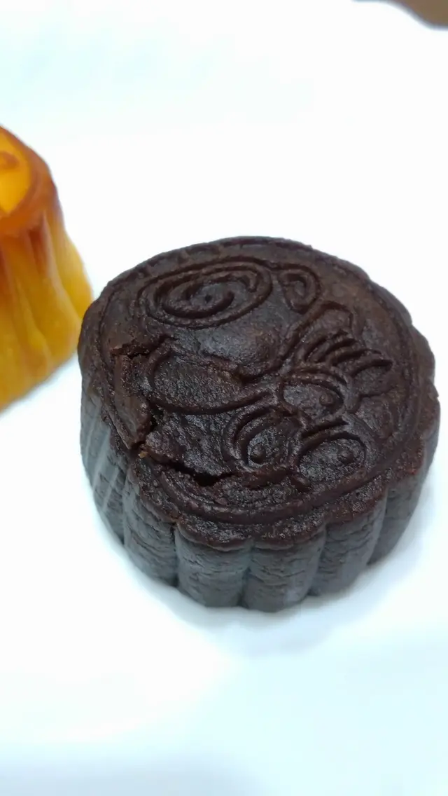 特選 18/25 咖啡朱古力軟心月餅未開包裝袋,已見月餅表面被餡料多到爆開!