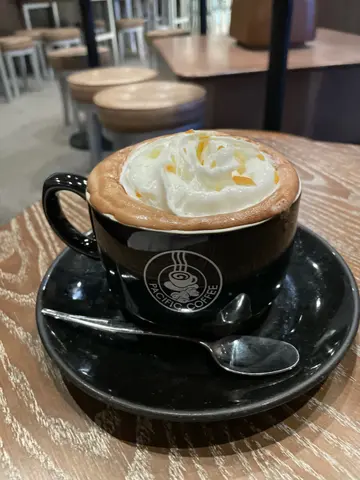 因為要等我老闆睇醫生,所以就去左中建嘅pacific coffee坐低。一向都好喜歡飲pacific coffee嘅熱朱古力,又香又濃又夠晒熱,冬天飲簡直一流。本來打算叫佢加忌廉,不過見佢已經蓋上蓋就算。好彩無叫佢加忌廉,唔係就浪費左佢嘅心機。一打開蓋,見到好靚嘅拉花,好有驚喜😍😍好開心佢整一杯朱古力都咁有心思,亦好驚訝朱古力都拉到花,我唔飲咖啡嘅,所以好難得有一杯飲品係咁靚,好開心朱古力一如以往咁熱咁香濃咁滑,好滿足咁坐左個半鐘