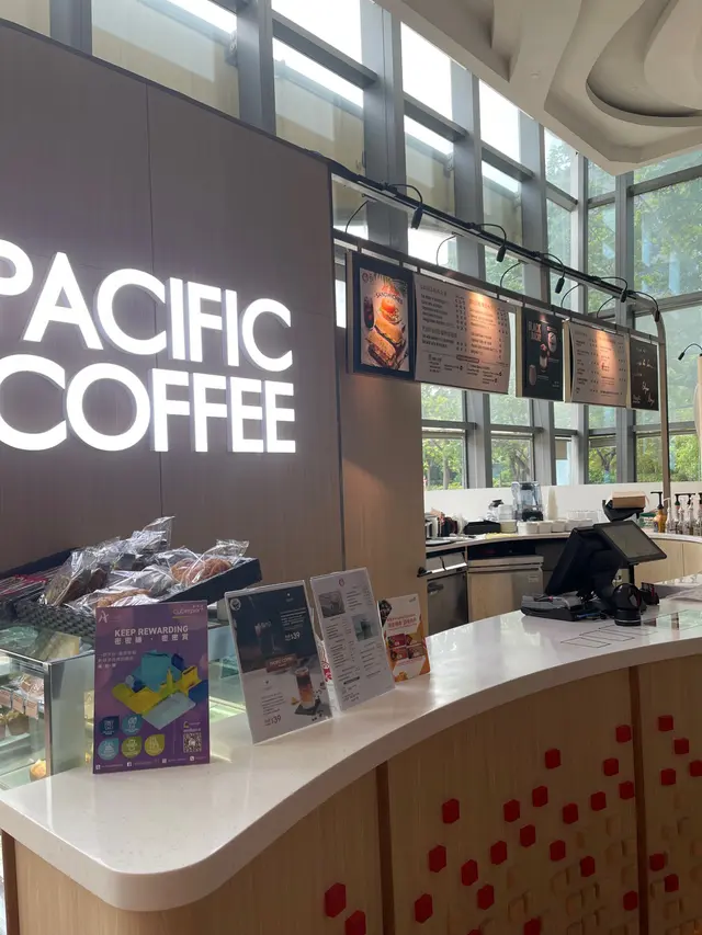 早前,得知數碼港開了 <太平洋咖啡 Pacific Coffee> 分店,在商場食飽後找一找,位於4樓平台,望出室外草地,附近有香港艾美酒店,才發現環境不錯,而且落地玻璃,樓底高光猛開揚,可找天幫襯啦!