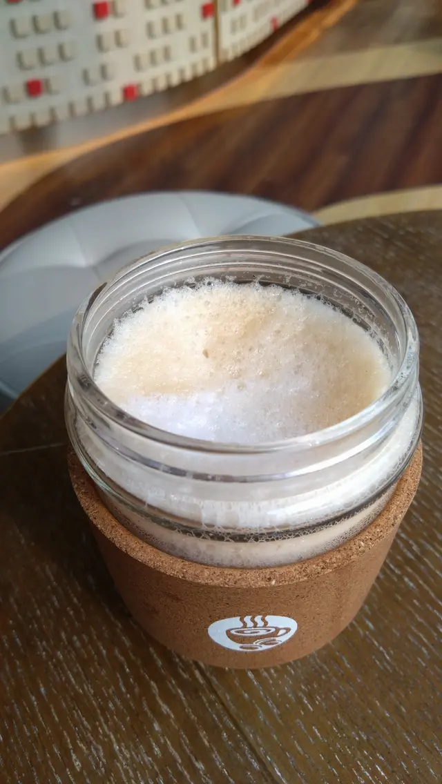 表面奶泡細膩厚身,玻璃杯盛載可看到其層次分明,