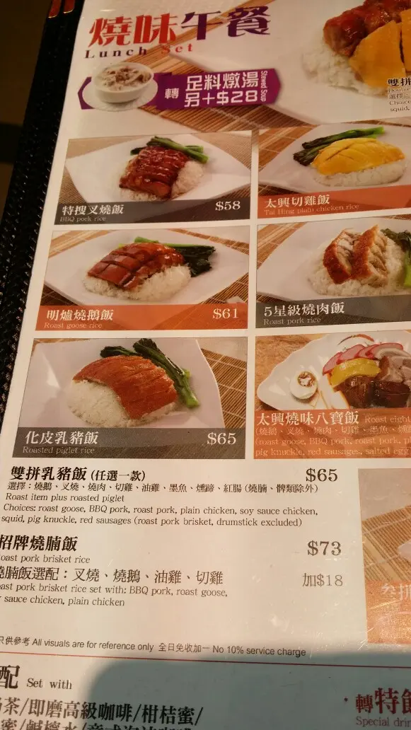 咪以為太興淨係做燒味,佢個下午茶包羅萬有,女仔細食可以嚟個輕量版茶餐,食件西多或者奶油豬仔飽,想飽的可以食碗湯麵,上次我食過牛肉麵都ok呀。 今日我就俾茶餐價食個 early dinner, 哈哈,當然係食招牌燒味啦! 我叫咗個特瘦义燒飯,肉質幼嫩,個蜜汁仲好惹味! 阿爸叫個叁拼燒味飯,跟足餐牌咁,三拼要燒肉切雞义燒,份量好足呀! 所有茶餐都包杯飲品,如果唔想飲茶啡,可以試吓佢嗰羅宋湯,超足料,有齊蕃茄椰菜紅蘿蔔…,高纖夠健康! 、湯粉麵組…查看更多