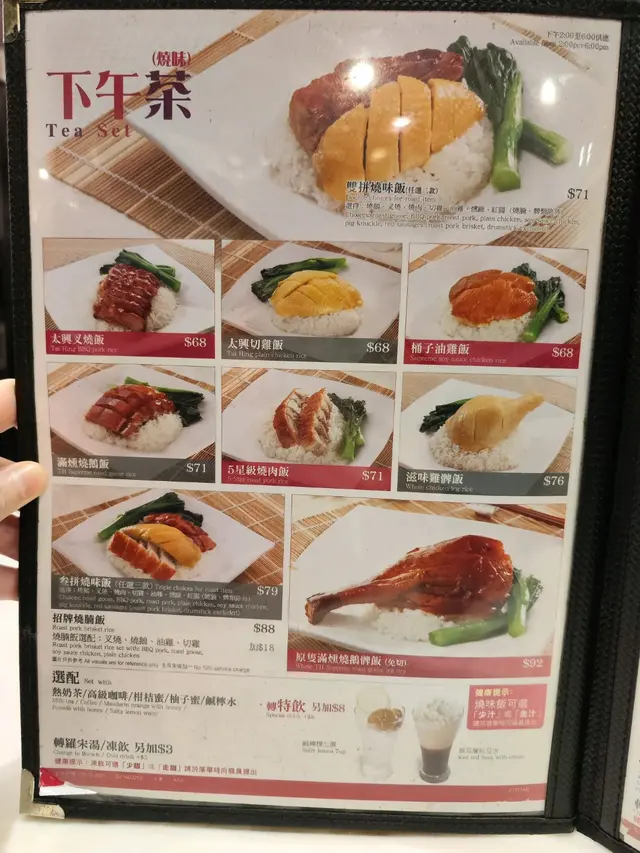 首先上枱係檸檬茶,少茶味而微微偏甜。梅菜扣肉上枱時賣相唔吸引,睇餐牌相片就幾吸引,但現場水準一般,與期望有差別。腩肉嚡口肉味道偏淡,而梅菜就碎濕濕似用機器攪伴過,腩肉與梅菜兩位主角質量一般,米飯軟硬度適中,墊底青菜算可以。其實好多茶餐廳或者小菜館都可以做得比較出色。太興梅菜扣肉煲價錢唔算平宜,好彩當晚有特別優惠,滿$100加$36送半隻雞,算係拉上補下。香茅豉油雞夠味,有微微嘅香茅同埋豉油香味,味道適中,不過啲肉就較嚡,而雞味偏淡。伴碟有簡單裝飾,只有蔥蓉而無甜豉油汁。唔知係唔係潮流少人食薑,抑或啲薑貴,好少食到薑蔥蓉,味道真係爭咁啲,至於碟蔥蓉夠蒽味,不過用鹽非常重手。香茅豉油雞水準好過梅菜扣肉煲。清潔整體算合格,地下睇到好多頭頭屋尾碎片。服務則夠勤快有禮貌,食物上枱從四方八面遞過嚟,前後左右上菜,就算後面隔住埲矮牆都難唔住佢哋遞碗飯過嚟。…查看更多