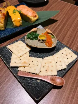(如果唔額外加餸,都絕對夠食~)明太子蟹籽蟹肉薄餅,出乎意料好食,細細舊又唔算太heavy,好食到我食淨一嚿先記得影相