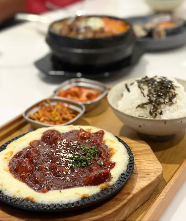 去海港城行街,路經發現一間幾文青Feel既韓國餐廳🍴,思韓病發作,立即入去試下先😋.芝士辣雞定食🐔熱辣辣好惹味!🧀包住D好嫩口既辣雞,再加上一口紫菜飯,OMG‼️太幸福了吧🤩.韓式湯鍋🥘同樣係熱辣辣咁上檯🔥裡面配料好豐富😋我地係選擇左牛鍋🐮另外仲可以選豬肉🐷,入面仲有年糕,午餐肉,豆腐,魚餅等等😋.我最鐘意既地方就係坐得好舒服!卡位相當之大🙉好闊落!行街行到攰攰地都好推薦過嚟坐吓食吓嘢🌟.奇納百川 @kinabaji地址:海港城海運大廈3樓LCX34號鋪📌