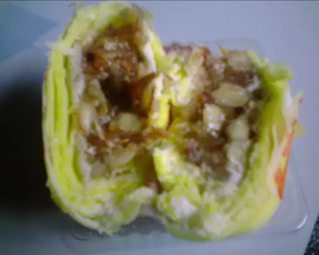 終於都係貪新鮮, 試埋果"椰絲蓮子月餅" @$49.5 (manhattan visa 有8折)餡料有椰絲, 原粒糖蓮子, 少量欖仁..因為唔油膩之故, 椰絲有點乾 + 渴喉... 原粒糖蓮子份量很多, 差不多有16-7 粒.... 初時擔心會好甜..但吃落跟兒時吃的糖蓮子唔一樣..表面糖份已沒有, 故不太甜, 蓮子味近乎零...質感完全像在吃塑膠...又立口又硬...如果閉上眼睛來吃...相信連食神都估唔到吃的是甚麼東西....份量多也沒用...又一劣作...柑既質素...做香港代表? 看成份, 有一樣叫"偏亞硫酸鈉" sodium metabisulphite上網查下.好像唔係幾健康.......至於豬肉..真是莫名其妙?成份:糖蓮子(含抗氧化劑 - 偏亞硫酸鈉), 砂糖, 蛋, 欖仁, 椰絲,糯米粉, 麵粉, 水, 花生油, 豬肉, 酸度調節劑 e501 (i),調味料, 調味劑@185g (784 kcal, 56.4 g sugars, 76mg sodium)查看更多