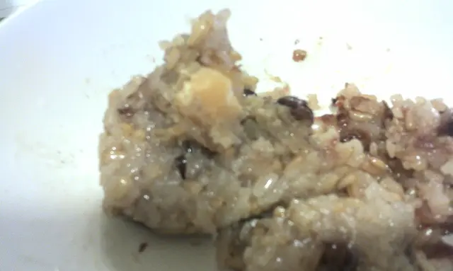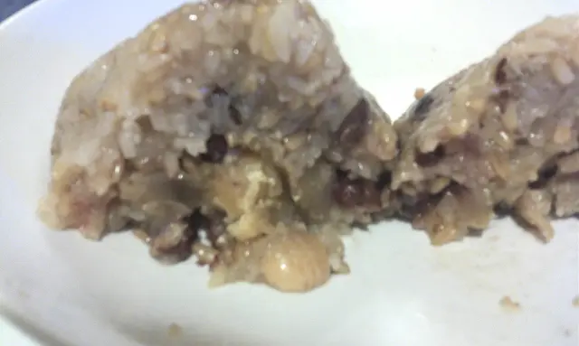 見到奇華新出了2 款五月粽, 其中有一款有至愛的栗子和紅豆, 趁父親節當天有8折,買定一隻回來, 原價 $42..粽的size 只有一隻細版咸肉粽般大...麥米已經很軟淋, 跟平常吃的麥米粥那般有"趙口"不同, 跟糯米一起吃, 顯得味道不突出..一顆顆紅豆粒頂多, 可惜有一半以上都較"硬", 不夠淋身另外還有1, 2 粒很硬的"蓮子", 栗子只得一顆..實在太少了, 始終是"甘栗粽" 嘛!幸好很粉亦有栗子味 (絕不是日式的無味栗子), 較特別是中間有一pat 栗子茸, 味道濃且滑, 又不油膩..同樣弊病是份量太少了..一心想吃栗子粽的, 會有點失望..栗子少, 紅豆唔淋成份 :糯米, 栗子茸(栗子, 抗氧化劑E539, E385, E300), 酸度調節劑E452(i), 色素E164,穩定劑E522, 砂糖),紅豆, 燕麥米, 蓮子. 調味料, 調味劑Expiry 26/6/2012 (無重量標示)@100g, 157kcal, sugars 3.6g, sodium 16mg查看更多