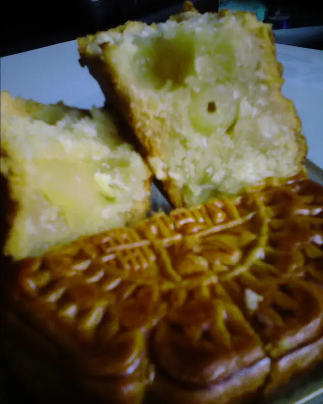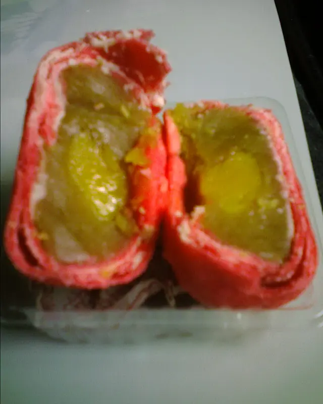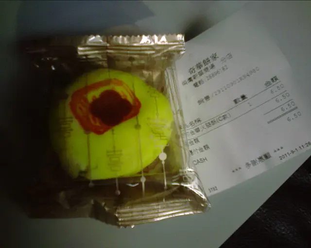 臨近中秋...店內塞滿顧客購買月餅..未到15,雙黃白蓮蓉已經售罄..上次試了蓮蓉蛋黃迷你酥, 今回再試豆蓉..曾經有段時間很喜歡吃奇華的綠豆蓉麵包..後來感覺奇華的麵包 + 包裝蛋糕的水準下降了..就沒有再買來吃..豆蓉帶少少咸少少甜 (幸好咸味比甜味弱!), 綠豆味很淡薄, 吃下有點"渴喉"蛋黃一丁點但不乾涸...只可以說, 甜癮起的時候, 買來頂頂癮而已..吃罷這個, 還是想念太子"上野" 賣的綠豆凸...黃色的綠豆蓉既札實又濃味又不油. 綠豆蓉(砂糖, 綠豆粉, 水, 花生油, 紅蔥頭, 食鹽, 五香粉, 色素E102),麵粉, 食用豬油, 鹹蛋黃, 水, 色素E102,E110,E129@52g (218kcal, 10.9g total fats, sugars 9.1g, sodium 99mg), E:7/10/11查看更多