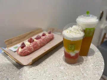 走進這家店,空氣中瀰漫著各式各樣的茶香和點心的溫馨味道。一試草莓雪嶽,感受到係芝士奶蓋那股細膩同滑嘅口感,一啖啖的草莓粒食落去既時候,餘韻喺口腔中回甘,好有層次感。草莓味嘅甜澀帶出茶的清香,令人試完仲想再試。歐包系列就有款草莓魔法棒,外表正到冇話講!賣相噴火得嚟,啲cream又唔會太甜膩,啱哂唔鍾意嘢太甜嘅朋友。不過,歐包嘅口感就普通咗啲,好似欠缺咗啲驚喜。南瓜嘟嘟係三款點心之中最搶眼,裡面嘅拉絲效果正,一啖咬落去,南瓜同芋泥嘅香甜在口中交織,而隱身於中間的麻糬,質感就算有啲失色,但總體上都算夠水準。而霸氣榴蓮王,真係霸氣側側!榴蓮愛好者準冇錯過,香濃的榴蓮餡還您一個滿足的微笑🥰,每一口都係滿足感爆棚。今次食既經驗真係夠哂心水,下次會唔會再黎?答案係一個肯定嘅"會"!👍🌟🍰