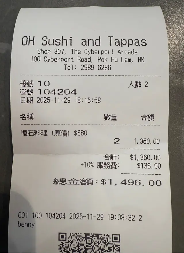 奧壽司 (薄扶林) 網址: https://s.openrice.com/QrbS0YZa000 地址: 香港薄扶林數碼港100號數碼港商場3樓307號舖 電話: +852 29896286