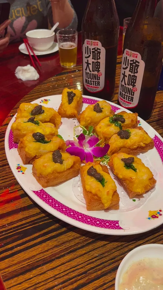 一大班朋友聚會,揀左食呢間女人街食飯公司,食中餐就係可以大圓枱方便傾計💬網上話服務麻麻,我哋又唔覺喎,6:50pm入座,8:30pm準時交枱,大家有共識,每人食左$216,可能我地人多。食大排檔小菜,落單哥哥提醒話我地全部叫曬炸野😅….成班友唔怕熱氣死🤣XO醬海鮮小炒王豉椒炒蜆黑椒蜜餞薯仔牛柳粒避風塘炒鮮魷肥美燒叉燒脆皮炸牛腩酥炸小棠菜蝦餅酥炸蠔餅黑松露鮮蝦多士🔅野食大大碟,份量夠多,但某幾碟味道偏重,廚房落多左鹽。✅每枱都必叫黑松露鮮蝦多士,按人頭份量,一人一件,炸得幾香,好大舊蝦肉,黑松露聞落去好香,但食落去又冇咩松露味。✅黑椒蜜餞薯仔牛柳粒,薯仔好食甜甜地有蜜糖味,牛柳粒就偏咸。✅酥炸小棠菜蝦餅炸得酥脆!落左好多蝦肉!🔆其他野食海鮮類,我因為大肚就冇食到,其他人都食到津津有味,最後我地係食清曬冇浪費做大side鬼架~😊👍🏼🍻仲叫左兩支藍妹啤啤佢!用戰鬥碗黎飲!🤪同埋可樂忌廉汽水!🥜不得不提場內裝修都幾特別好適合打卡,走懷舊大排檔風格,但就嘈d, 講野要好大聲先聽到👂🏼…查看更多
