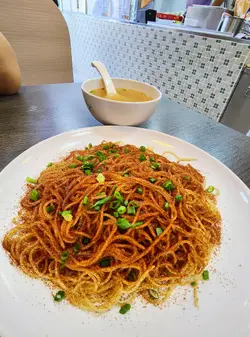 元朗呢間「好到底」,真係由細聽到大嘅老字號!鋪頭細細,長期有人龍等位,為咩?咪就係為咗佢哋碗招牌蝦子撈麵囉!講真,試過一次你就明點解咁多人推介,絕對係鎮店之寶,嚟到唔食真係走寶!首先,個麵底已經贏晒!正宗竹昇麵,師傅日日人手打,啲麵條幼細又爽脆到「索索」聲,咬落去超級彈牙,個口感真係冇得頂,同啲機打麵完全兩回事。重點嚟喇——上面鋪到滿滿嘅金黃色蝦子!一上枱,個蝦子香已經撲鼻,咸香鮮味到不得了,啲蝦子多到好似唔使錢咁,撈勻之後每條麵都沾滿晒,食落口「卜卜脆」,鮮味爆燈!靈魂所在仲有佢哋秘製嘅豬油同豉油!加少少落去撈麵,嗰陣懷舊嘅豬油香即刻昇華晒成碗麵,香到暈!豉油帶少少甜,唔會死咸,同蝦子嘅鮮味夾到絕。食嘅時候記住要撈得夠勻,等每條麵都吸晒啲精華呀!雖然係撈麵,但個麵底做得好好,完全唔會「黐埋一舊舊」或者過淋,由頭到尾都保持住爽彈。份量睇落唔算好大碟,但勝在夠精,食完係滿足嘅!有咁高質嘅傳統手功麵,仲要係元朗老字號,真心抵食。環境就係典型舊式粉麵店格局,坐得迫少少,但為咗碗咁正嘅蝦子撈麵,絕對值得!總結: 嚟「好到底」,水餃雲吞可以下次試,但碗蝦子撈麵真係必食首選!蝦子多到誇張,竹昇麵爽脆無敵,加埋豬油香,係令人食完會掛住嘅傳統好味。專登入元朗食都值!…查看更多