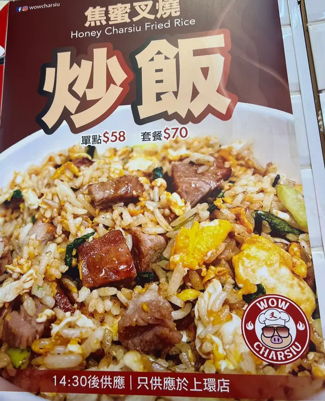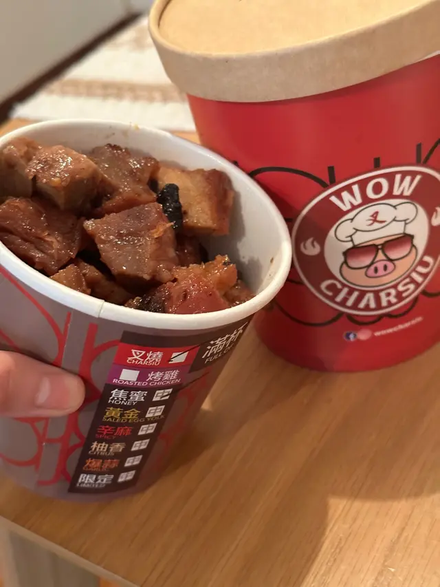 新派叉燒料理餐廳,結合傳統燒臘及創意口味,叉燒選用梅頭豬肉先低溫慢煮再高溫烤製。主打的WOW辛麻叉燒以特調麻辣秘方腌製,另有柚香、焦蜜等獨特口味,更以環保紙杯代替傳統飯盒。