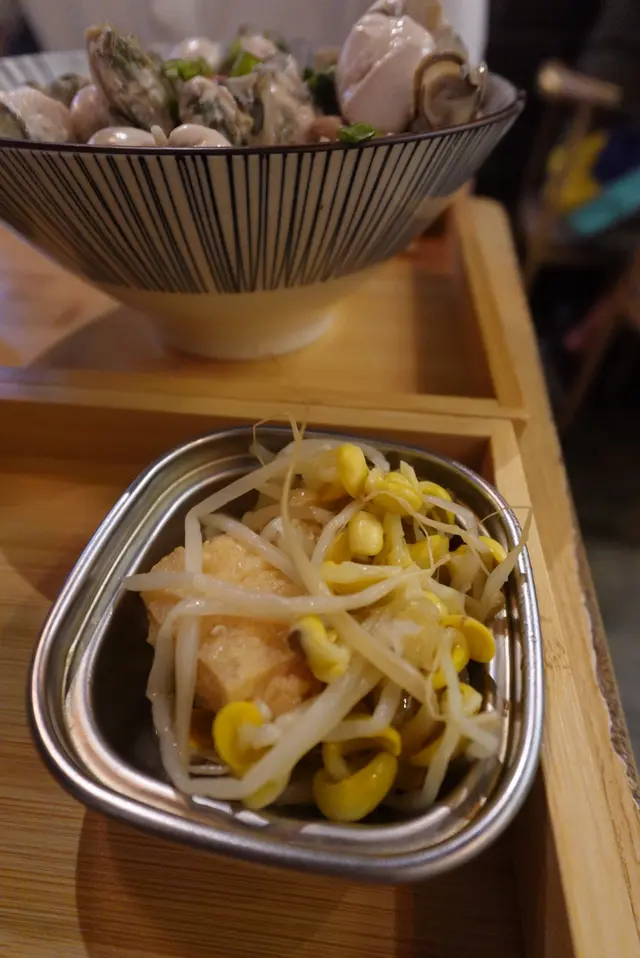 這家位於大角咀的「好吃吃光」主打台灣菜,店面不大,經常需排隊。這天恰巧不太長龍,其地道的風味,讓它成為了值得一試的台式小店。🍚 這天中午吃了 「月見海老蚵仔魯肉飯」 ,是小店的招牌名菜。鮮甜蚵仔、生蛋黃與秘製醬汁、一同拌勻,濃濃的海鮮香氣和蛋液包裹着軟硬適中的米粒,口感層次非常豐富。另外,也試試「蚵仔湯飯」。蚵仔鮮美飽滿,份量十足,湯頭清甜,暖心暖胃的簡單好味道。座位舒適度一般。建議避開繁忙時段前往,以減少排隊時間。…查看更多