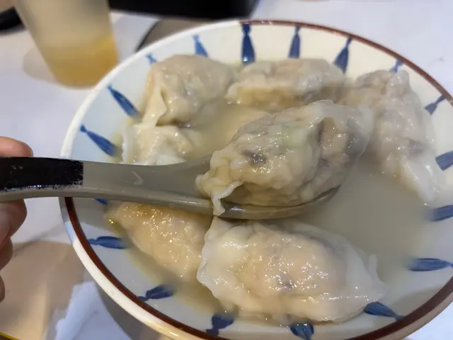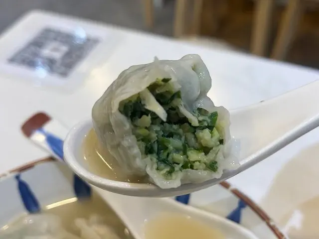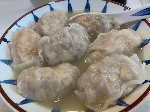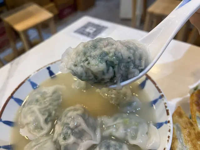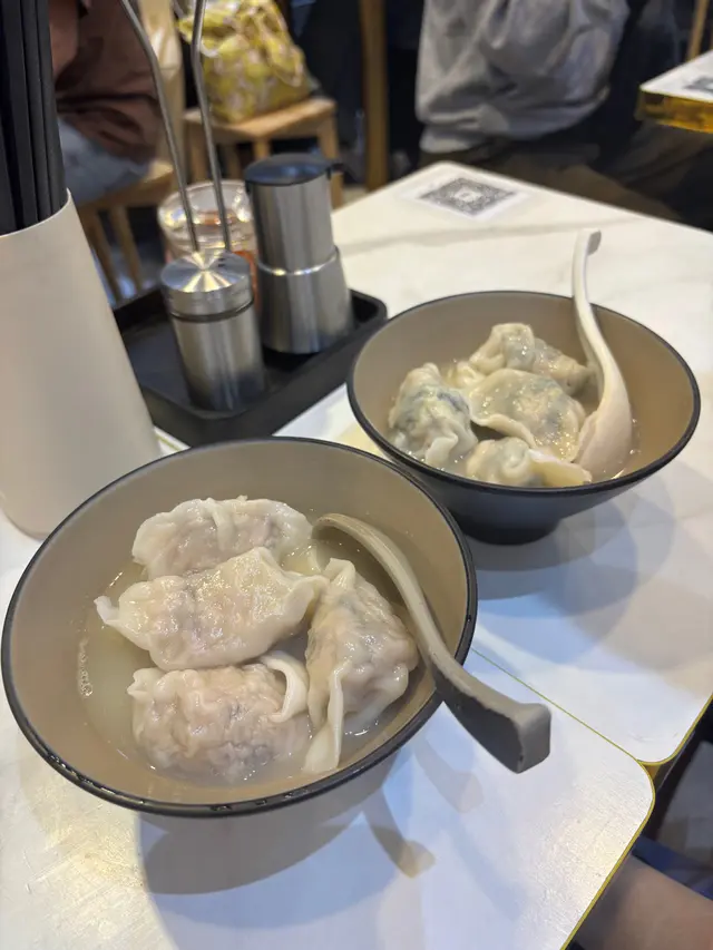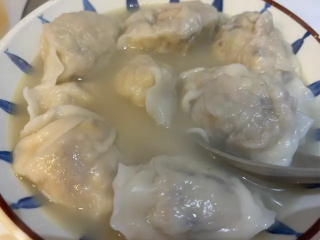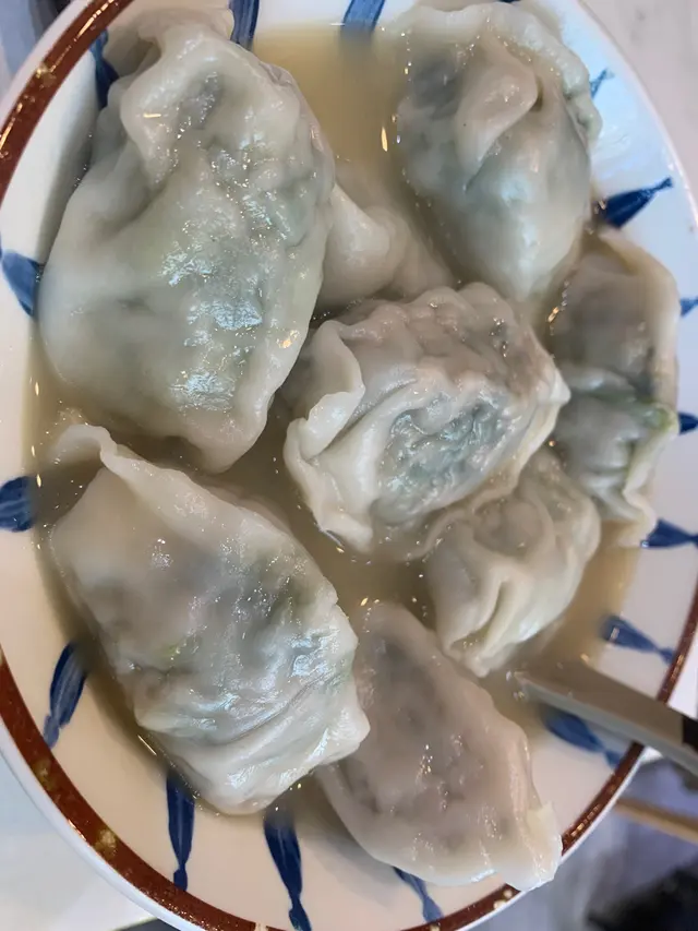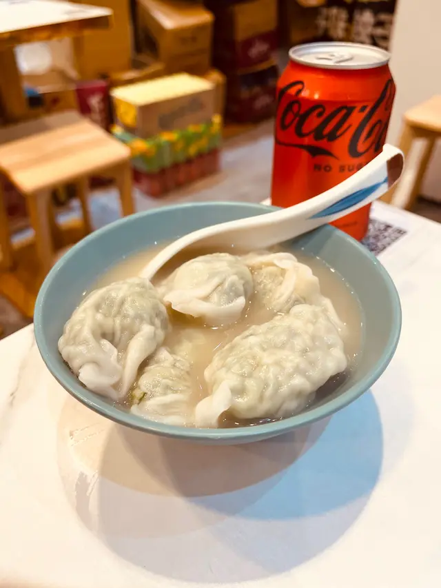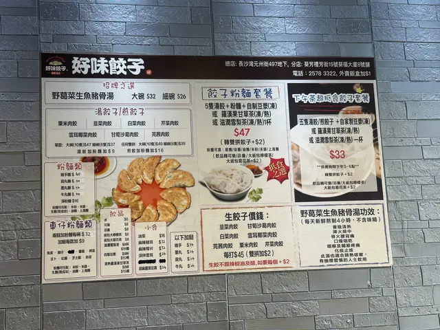 滋潤雪梨茶~下午茶餐配飲品,而且不用加錢可以配雪梨茶,酸甜度幾爽。迷你版有5隻湯餃,湯底是野葛菜生魚豬骨湯,食店標榜每天新鮮熬製4小時不加味精,牆壁上的餐牌還註明湯底的功效,誠意可加。