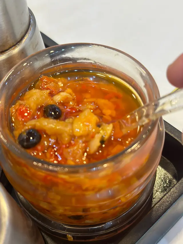 牆壁上掛着大大個餐牌,筆者依個時間,當然二話不說就點下午茶餐啦!枱上調味餃子,最吸睛就是那辣菜莆。豆豉辣椒菜甫,未算太辣,很惹味,恰到好處。