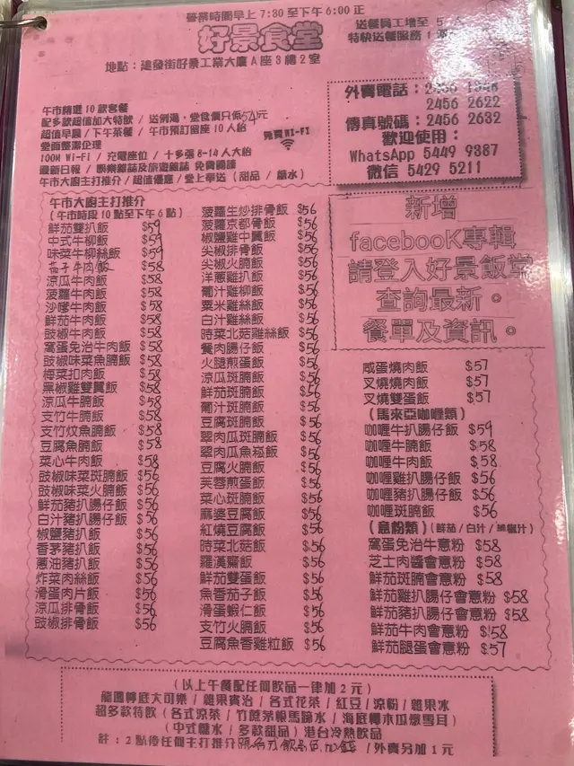 好景食堂 (屯門) 網址: https://s.openrice.com/QrbS0cSWA00 地址: 香港屯門建發街11號好景工業大廈A座3樓2室 電話: +852 24562622