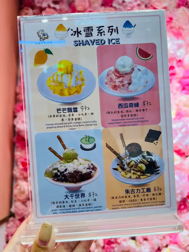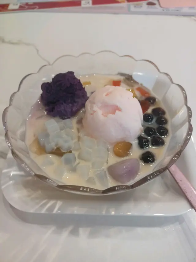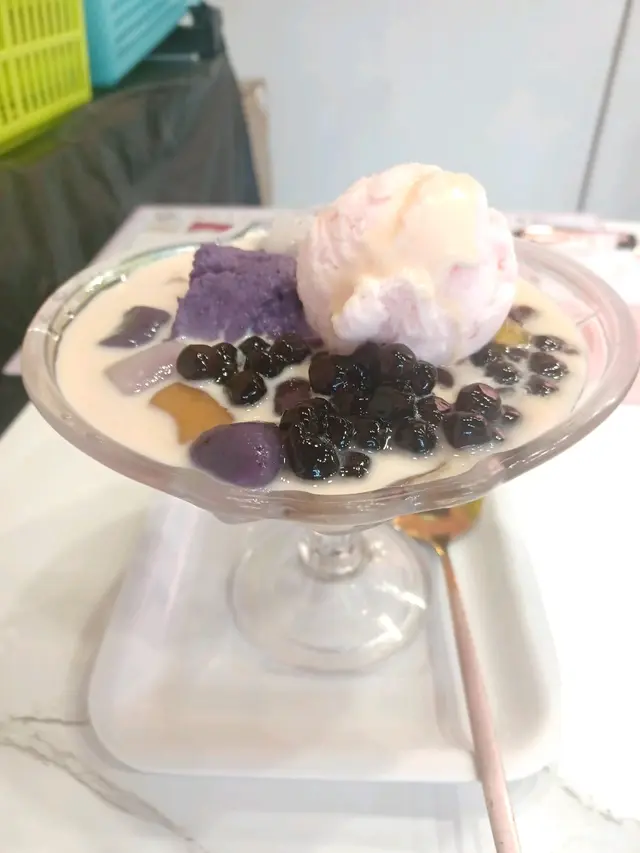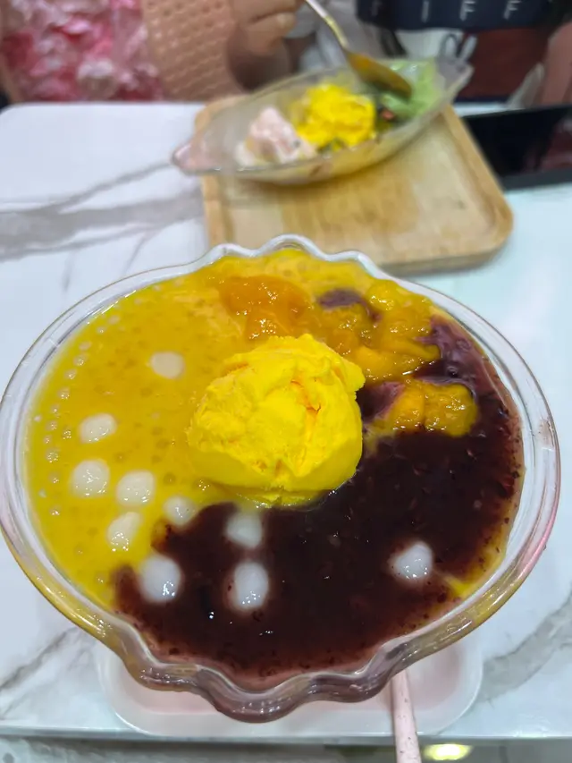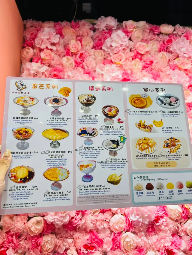 難得出開石門扒龍舟,就同同學仔媽媽一齊去埋馬鞍山行下🚶🏻‍♀️見到呢度有間花牆打卡既甜品鋪🌸真係好吸引😍所以忍唔住入去試下❣️芒芒飄雪🥭$72入面用咗芒果棉棉冰🍧而每一粒嘅芒果都係好香甜又大粒🥭配料仲包括小丸子、椰果、芒果雪糕🍨完全係媽媽最愛😍夏天食佢,完全勁解暑👍🏻小丸子仲要勁煙煙韌韌,啱晒我呢啲煙靭控❤️紫屬於你💜$56入面嘅材料分別有紫薯、珍珠、芋圓、椰果、荔枝雪糕、椰汁愛玉💛有咁多款材料喺入面,真係令到成個甜品嘅層次都增加咗唔小❤️珍珠同埋芋圓都係勁煙韌彈牙😍而愛玉糯米仔同我講佢食緊啫喱🤣另外佢地甜品店係開到凌晨1️⃣點,夜晚口痕想食甜嘢,呢度真係幫到你😂而且甜品真係勁足料😍值得一試👍🏻查看更多