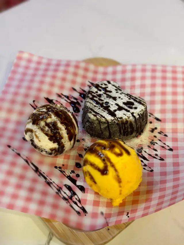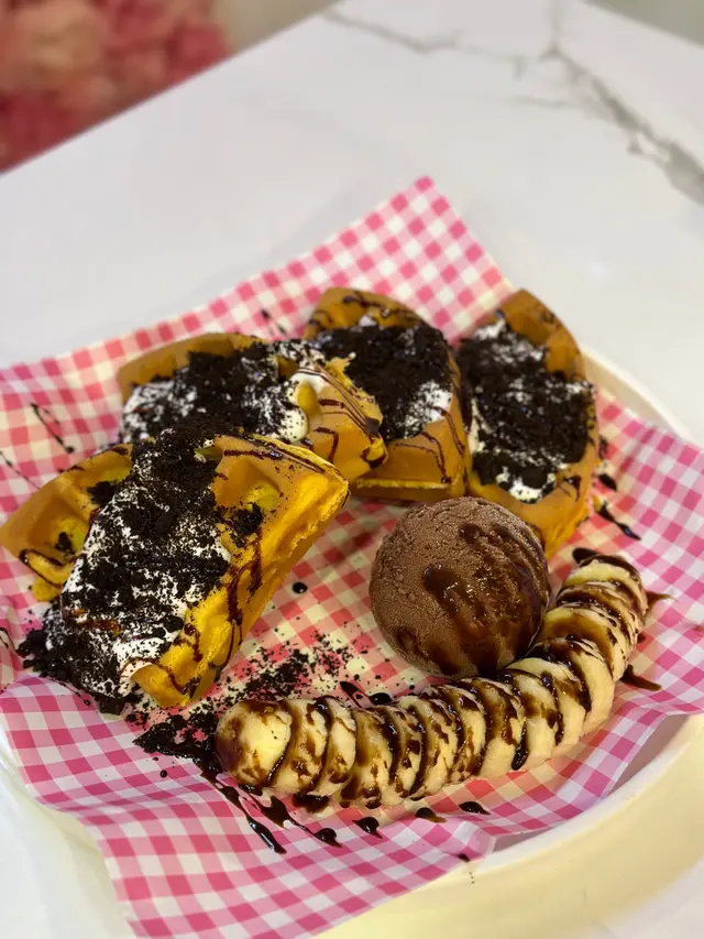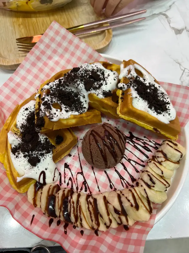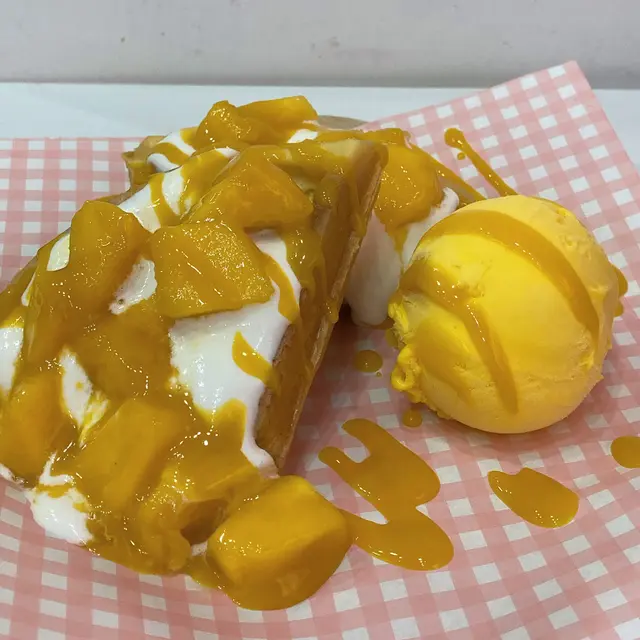 以前成日都覺得馬鞍山係美食沙漠🏜️今日喺泳池游完水行緊番去搭地鐵嘅時候🤣發現有一間甜品店🤤又好耐冇食呢啲邪惡野😈就決定試吓佢👻🧇香蕉Oreo 朱古力窩夫窩夫有得揀半份或者全份🫡游先水太肚餓就食全份啦🤡窩夫好香外脆內軟🧏🏻‍♀️口感似雞蛋仔🥚香蕉🍌配朱古力🍫永遠都咁夾😭切窩夫嘅時候小心切埋底紙就得🤣❤️心太軟配雪糕心太軟極流心🥺朱古力味濃之餘又唔會太膩👍🏻加埋雪糕嚟個冰火會合🫶🏻太爽了🙉🥭芒芒飄雪芒果冰整得好靚🤤軟綿綿嘅牛奶冰配上芒果真係一啖接一啖咁食🤭椰果唔會死甜👍🏻當日食嘅途中🙂‍↔️仲有隻狗狗喺門口🤪一定係啲食物太香吸引住佢🥳查看更多