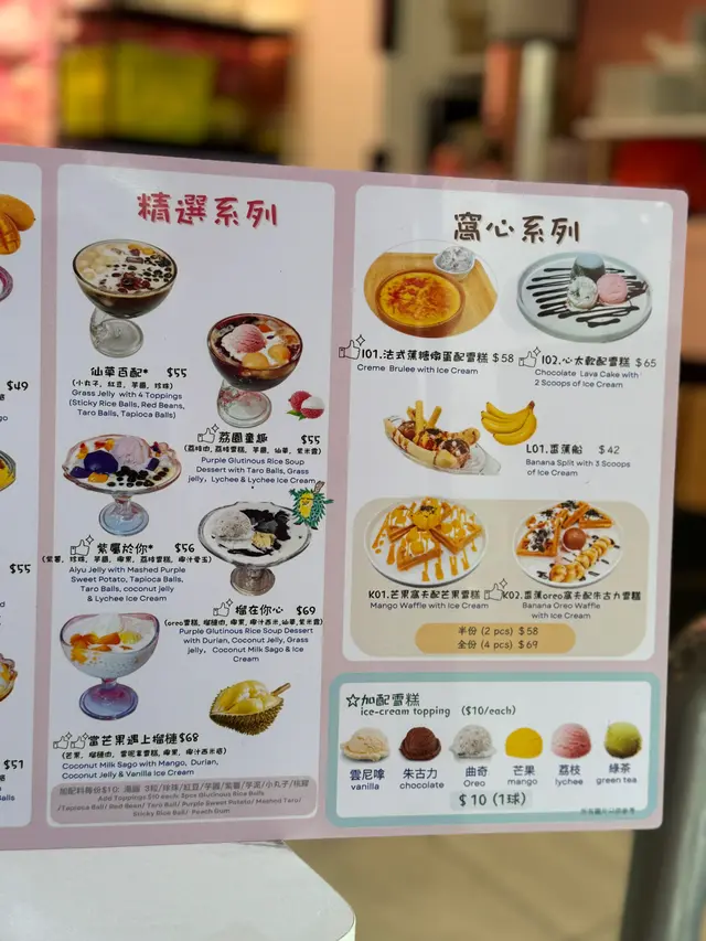 夜晚散步行過經過馬鞍山新港城中心外面見到有間粉紅小屋極吸引,進入一看原來是一間提供各式甜點的甜品店,店內位置不大,但是花團錦簇好溫馨,餐廳供應林林總總的甜品,廣式和台式均有,例如適合炎炎夏日各款仙草凍、雪糕西米露、香蕉船等等。還有各類經典款例如紅豆沙紫米露芝麻糊等中式糖水,冰雪系列、香芒系列、窩心系列、椰皇燉蛋白系列,甚至有坊間少見的椰子凍🥥系列,可供選擇的甜品包羅萬有,總有甜品符合你的口味。真是好適合想一次過吃到多款甜品的人啊!查看更多