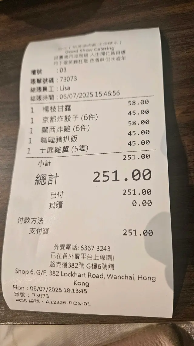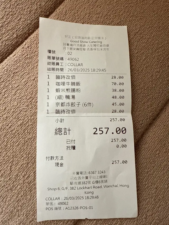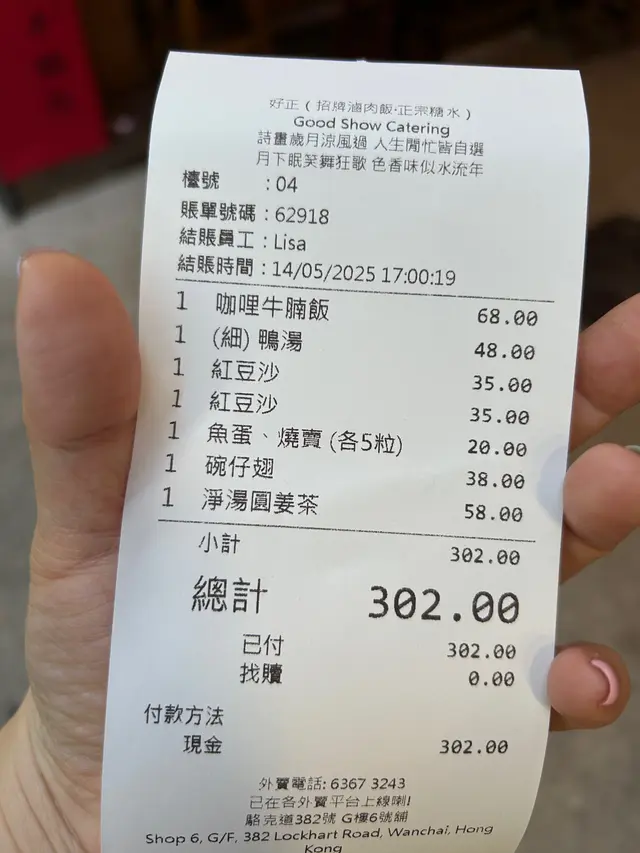 好正 (灣仔) 網址: https://s.openrice.com/QrbS0jtiD00 地址: 香港灣仔駱克道382號莊士企業大廈地舖 電話: +852 63673243