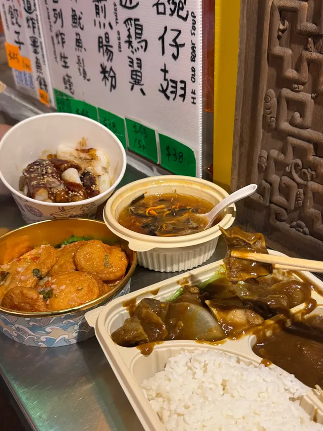 2025年7月16日 星期三呢日咁岩出咗去灣仔拎野,之後就想買外賣返屋企食見到駱克道呢間小店裝修得幾有特色,感覺似係台灣傳統老店既裝修咁門口周圍都貼左餐牌,餐廳主要推介土茯苓陳皮老鴨湯,聲稱可以去濕解毒,舒緩皮膚痕癢,仲可以潤喉益肺添,咁岩呢排把聲沙沙地,就積管試下除此之外仲有唔少食物選擇,價錢都唔算太貴,於是除咗湯,我仲要左個飯同甜品,另外再要咗一杯飲品一邊返屋企一邊飲呢杯係芒果沙冰,賣相非常吸引,膠杯盛載住鮮黃芒果沙冰,店家仲用心設計咗個粉紅色杯柄,方便拎住周街行,沙冰芒果味香濃自然,絕非一般芒果香精,飲落去好似真係食緊新鮮芒果蓉咁,清甜而不膩,而且沙冰口感細膩,冇雪粒感,唔會越飲越苦或越水,飲落真係透心涼,係炎熱天氣嘅最佳拍檔返到屋企已經急不及待想嘗試個土茯苓陳皮老鴨湯,仲係熱辣辣,湯色深棕、聞落好香,好有傳統藥膳湯嘅味道,老鴨湯底濃郁,入口甘香土茯苓有清熱解毒、祛濕健脾功效,而陳皮則有理氣健胃嘅作用,呢碗湯真係養身之選鴨肉煮到夠腍,啖啖肉滑,不過唔會爛到冇口感,啱晒鍾意食肉又想養生嘅人味道方面湯味濃而不膩,草藥香氣自然流露,冇嗰種過份苦澀或者太重藥味飲落之後,真係有種由內至外嘅放鬆感,好似身體排咗啲濕氣咁!!呢個係咖喱牛腩飯,牛腩炆得夠腍,入口香濃,脂肪分佈得宜,冇柴口,而咖喱微辣帶甜,唔係印度那種勁香料型,反而更適合大眾口味配菜方面,滷蛋入味、醃蘿蔔爽口、白飯煙韌,整體配搭唔油膩又夠豐富最後甜品有楊枝甘露,如果話芒果沙冰係「消暑神物」,咁楊枝甘露就一定係「港式甜品女神」!主角有芒果蓉 + 西米 + 柚子肉,再加椰奶混合,口感層次非常豐富芒果香味突出,而且唔太甜,有種自然果香,唔似坊間加過多糖漿嗰種,而且柚子果肉帶少少酸,啱啱好可以中和芒果蓉嘅甜膩,成個味道超balance!!再加埋西米煙韌唔冧身,有凍凍哋嘅口感,真係一啖接一啖停唔到埋單大約二百幾蚊,份量十足,食到好飽…查看更多