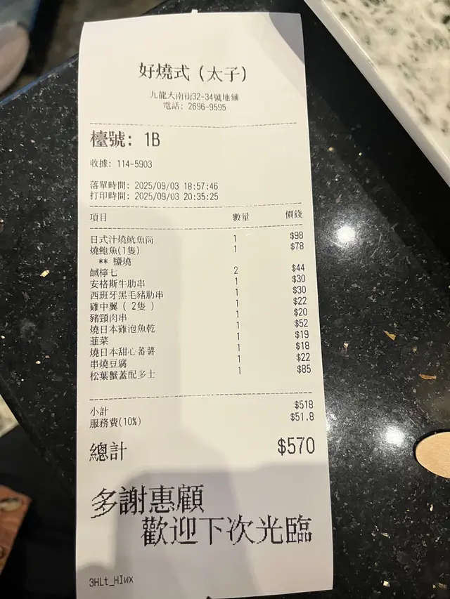 而家好多餐廳都好早關門,想同朋友夜啲出去食嘢吹水都難。太子呢間串燒店「好燒式」真係唔錯!開到凌晨兩點,鋪頭喺太子站附近,對住旺角睿景酒店,仲近中港巴士站,交通超方便。環境熱鬧得嚟唔會太嘈,座位舒服,啱晒同朋友慢慢吹水,唔使趕頭趕命。串燒款式多,海鮮選擇特別多,仲有唔少佐酒小食。食得出係即叫即燒,但又唔會要等好耐。🐚蒜蓉燒聖子王:👉必食推薦!聖子王真係超大隻,係真正嘅king size,做緊$180/2隻,以呢個size同新鮮程度而言,好值得食!肉厚鮮甜,彈牙又多汁,食得好滿足。🐟鹽燒白鱔:魚皮燒到金黃微焦,鱔肉肥美唔腥,簡單用鹽燒已經好鮮味。🐷泰式豬豚肉:豚肉肥瘦均勻,配泰式調味幾惹味。🍗雞中翼 & 雞全翼:外皮燒到香脆,鎖住肉汁,醃料味道恰到好處。雞全翼亦燒得啱啱好,夠入味,正!🍖燒雞胸軟骨串:雞胸軟骨燒得啱啱好,咬落去咔咔聲,爽口彈牙,口感十足,送酒一流!🥓煙肉露荀卷:鹹香煙肉配上嫩滑露荀,口感清甜不膩。🍖雞軟骨:脆卜卜又帶點油香,咬落「索索」聲,送啤酒真係一流!🥬娃娃菜:燒到軟淋淋,菜葉吸咗燒烤香,清甜多汁。🥬蒜芯:燒完依然爽脆冇渣,帶淡淡蒜香,解膩一流。🍆原條蒜蓉燒茄子:蒜蓉份量剛好,夠香同時唔會太油,食到茄子本身嘅清甜,口感軟綿綿。🍄牛油金菇包:牛油香氣十足,金菇吸晒精華,爽滑多汁,點泰式醬汁出奇地夾。🐡燒日本雞泡魚乾:魚乾燒到微脆唔韌,點沙律醬食,嚼勁十足,好岩送酒。啤酒:叫左1664 draft beer,店內仲有好多唔同支裝啤酒選擇,岩邊食串燒邊飲。…查看更多