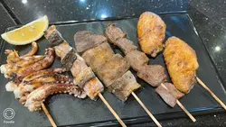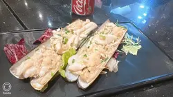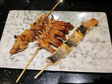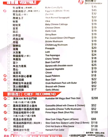 約咗友人飯局,點知佢臨時要北上工作一陣,但會趕得切飯局時間。為咗唔想佢咁趕,今餐飯聚地點去咗呢間串燒專門店。位置就係旺角睿景酒店對面,附近就有中國旅遊巴士站,落車行過黎都好近,我可以一邊食少少串燒飲吓嘢,一邊等佢黎。見到燒烤部,師傅接單後即燒,密密手不停燒。落單後,最先出場係蒜蓉燒聖子王 ($160/2隻)切好幾段方便易食,蒜蓉加爽彈聖子肉,無得輸。自選串燒拼盤燒好上枱,有鹽燒白鱔($49),鹽燒牛舌串 ($30),鷄中翼 ($22/2隻),鷄腎串($20)及魷魚鬚 ($28)。鹽燒白鱔有兩件,燒得皮香鱔肉仍帶油香。牛舌無點牛舌芯,但肉質都軟身,唔係柴乾舌,點酸辣汁/加幾滴檸檬汁都可以。其餘幾串都燒得唔錯,趁熱食。黎得食串燒,蔬菜類中點少得蒜蓉燒茄子 ($40),可選擇原條/切片,我鍾意原條上。蒜蓉舖滿成條茄子肉,輕輕一夾已可一注夾起,軟綿加蒜香,個人自肥必食。友人唔食得茄子,佢叫咗牛油金菇包 ($40),金菇菜以牛油一齊煮,入口嫩滑之餘多一份牛油香味。另一轉串燒,有串燒豆腐 ($22)及豬仔髀 ($42/2支骨)串燒豆腐外脆內嫩,外皮唧上甜甜地嘅醬汁,好食。豬仔髀第一次食,配上酸辣汁,拎起支骨就可以啖啖肉咁食,呢口價相當抵食。最後叫埋個鮑魚汁海鮮荷葉飯($108),份量夠2-3人食。打開荷葉後香味飄出黎,以蜆肉,蝦,仿鮑片,翠肉瓜粒及蛋絲快炒,飯粒夠乾身唔油膩,熱辣辣食返碗都幾正。宵夜時段去到凌晨兩點,夜歸人/夜鬼都唔驚無嘢食啦。…查看更多