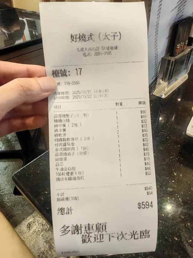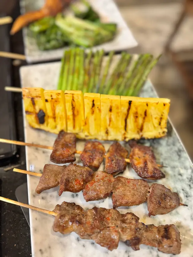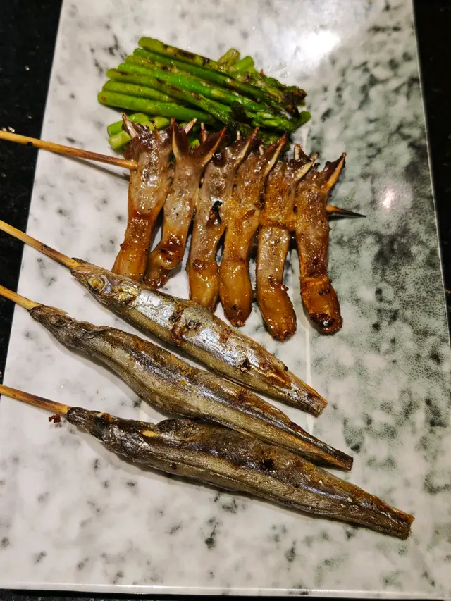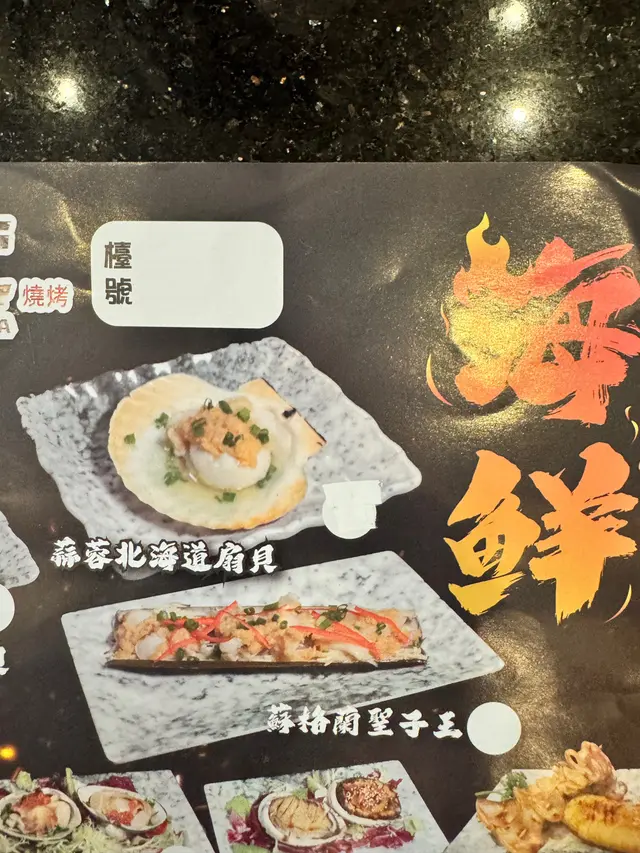 蒜蓉燒扇貝 & 煙肉燒蠔 & 白汁芝士燒蠔 & 墨西哥薄餅芝士雞肉 & 和牛肋串 & 鹽燒牛舌芯 & 陰公豬 & 豬仔脾 & 魷魚鬚 & 厚燒玉子 & 蒜蓉燒茄子