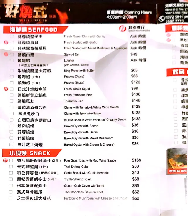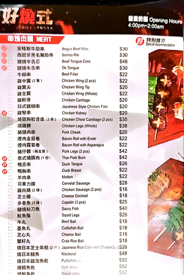 好燒式串燒專門店 (大南街) (太子) 網址: https://s.openrice.com/QrbS0p2q900 地址: 香港太子大南街32-34號地舖 電話: +852 26969595