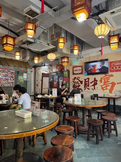 •啫啫鸡煲:上桌还在“啫啫”响,砂锅边焦香的鸡皮超入味,鸡肉嫩到飙汁,配碗白饭能炫两大碗!•铁板鱿鱼:铁板端上来滋滋冒油,鱿鱼Q弹不柴,蒜香和酱香味裹满每一口,下酒绝了!•牛肉炒面:镬气就是灵魂!面条根根分明,牛肉滑嫩量还足,吃完嘴里还留着焦香~•手撕包菜:解腻神器!脆爽带点微辣,平衡了肉菜的厚重,空口吃都停不下来!店面就是老香港大排档的样子,烟火气超浓,街坊和打工人坐满整家店,人均几十吃到撑,性价比直接拉满!