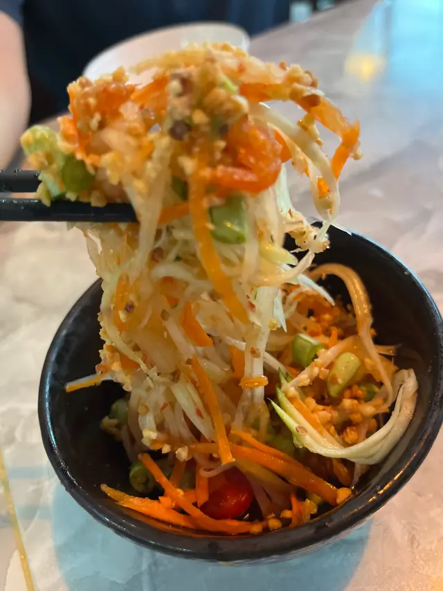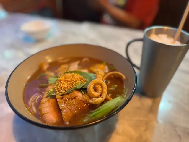 新蒲崗廣場雖然舊舊地,但交通超便利,係民生區嘅美食寶地,感覺間間都平靚正。試咗其中一間泰國餐廳,裝修正宗有氣氛,食物夠水準又唔貴,服務有溫度,好適合家庭同朋友聚餐呢,頭先仲見到店員哥哥幫一枱客影相!🍴睇下有咩食先飲品呢度裝修都好有特色黯然銷魂飯 $72泰國都有「黯然銷魂飯」?嘅碟飯泰式叉燒真係幾特別,一樣用梅頭肉,但唔係港式麥芽糖甜味,而係胡椒加泰式香料,香甜至於有少少辣,有啲似芭堤雅排骨嘅融合風味。而太陽蛋少少流汁,配合泰國絲苗米,真係豐富又開胃🍚🔥。燒元貝 (2隻) $48燒元貝睇落好誘人,雖然燒過,但無燒焦,仍然保持嫩滑多汁,蒜蓉、香蔥同辣椒,令味道更鮮美。因為個飯無豉油,剩餘嘅醬汁真係倒落泰式叉燒飯,同飯一齊食超夾!😋龍眼冰 $24呢杯龍眼冰真係唔錯,啲龍眼粒飽滿鮮甜,飲落有煲過嘅濃郁龍眼味,飲得出無點落糖,仲帶少少薑嘅暖香,但原來完全無落薑,真係靠時間慢慢熬煮。唔怪得侍應哥哥話足料,啱晒想清涼又養生嘅你🥤✨。總計 $144…查看更多