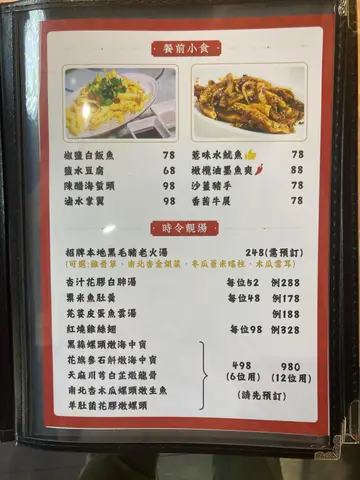 好友生日當然要好好慶祝一下,老婆找到這間位於旺角的樓上私房菜;店舖不算很大,除了大堂幾張枱外,還有三間私人房間。因大部份菜式已事先預訂,所以等到人齊便可直接叫起菜。😋首先上場的是「杏汁花膠白肺湯」,杏汁味非常香濃,甜度不算高,配上香滑爽口的花膠,確實好喝。採用香煎方法烹調的「陳皮鮮沙薑煎深海龍躉脊」,食落膠質感滿滿,魚肉鮮嫩滑溜,再配上鮮沙薑的獨特香氣,惹味又好食,超正。皮脆肉嫩的「脆皮鹽香雞」,外皮焗至金黃酥脆,肉質鮮嫩有咬口,品種不算大隻,五個人食感覺有點小。鮮嫩Q彈的「冰鎮醉鮑魚」,酒香入味,最適合用刀叉慢慢享用。大大隻的「聖子皇(隻)蒜茸粉絲蒸」,生熟度控制適宜,肉質爽嫩鮮甜,加上煮得入味的蒜茸粉絲,非常出色。最後加多幾款小食及炒麵,除了鍋貼外,其它大部分也有一定水準;想不到這間私房菜的水準這麼高,每人不用四百元,便可品嚐到,確實超值。在大堂每枱只要消費滿二千元,便可享免開瓶費服務,看來來這裏設酒局也可值得考慮一下。🤔#杏汁花膠白肺湯/位 $52#陳皮鮮沙薑煎深海龍躉脊 $218#脆皮鹽香雞 $194#冰鎮醉鮑魚 $210#聖子皇(隻)蒜茸粉絲蒸 $68#沙薑豬手(小食) $78#薑汁芥蘭 $80#豉油王銀芽炒麵 $88#東北煎鍋貼 $65#老虎菜伴雞絲(小食) $78#如一地址: 旺角花園街75-77號花園商業大廈1樓電話: 59827389…查看更多