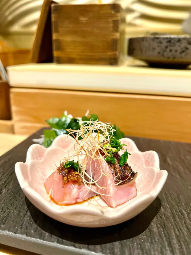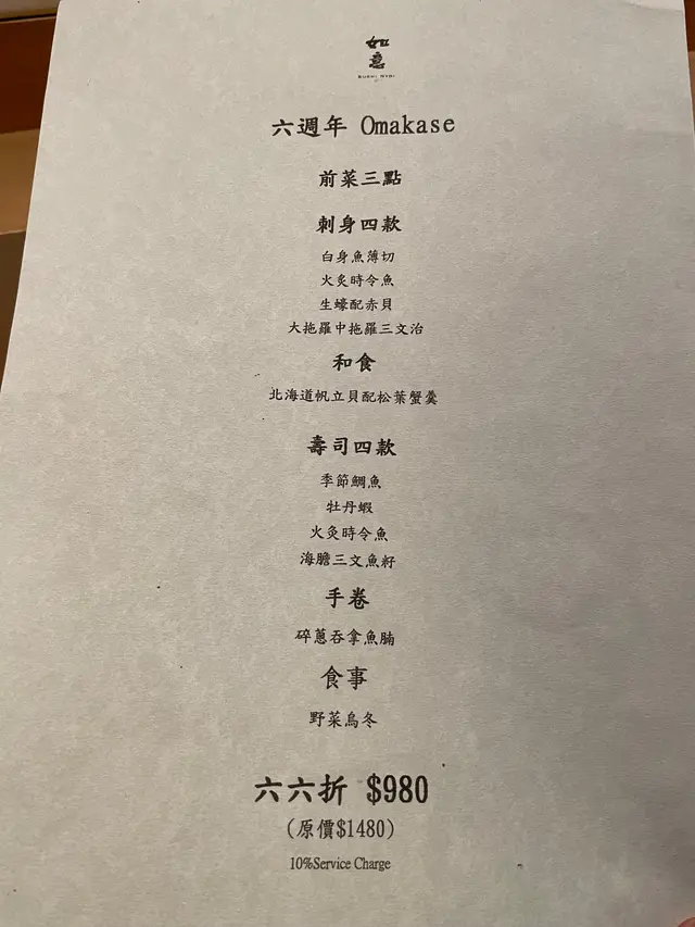 如意Sushi Nyoi 六週年誌慶😳佢哋有個6周年優惠,omakase 66折,性價比勁高!特別係師傅喺海膽、拖羅方面絕對唔會手軟。前菜三品胡麻菠菜:嫩葉浸潤胡麻醬,溫潤回甘 南蠻漬魚:京都傳承醃漬技法,甜甜地非常之香鹽燒銀杏:琥珀色果仁佐以薄鹽,香濃烤過嘅味道!刺身四重奏 |北海道鰈魚薄切| 第一件夾住三文魚籽,第二件火炙鰈魚邊泛起的焦糖香😁第三件海膽築起鮮甜巔峰|梭子魚| 火炙輕撫,魚脂受熱之後,帶香焦香,佐以三星漬與炸蔥絲共舞。|兵庫縣生蠔| 生蠔鮮甜美味配上伴蘿蔔泥與醋凍|活赤貝| 貝肉與青檸汁共振,輕輕一拍,突顯其新鮮吞拿魚拖羅三文治❗️大癲❗️紫蘇葉裹住霜降級拖羅😱指尖輕握間魚脂浸潤,勁肥勁香勁好食!和食蟹羹煨北海道帆立貝,一打開超大粒帆立貝在蟹黃高湯中,蟹肉香更能帶出帆立貝鮮味。壽司四貫 金目鯛:胡椒柚子皮點醒櫻粉魚身牡丹蝦:蝦膏與櫻花蝦堆疊出赤霞雲海 喜知次:炭火在魚皮烙下金黃印記 ,簡單調味已經係最好食海膽三文魚子:師傅超大房啲海膽多到滿瀉!◈ 手卷 「鱈魚乾碎蔥吞拿魚腩」 脆響聲中滲出魚腩油🤩本場手打烏冬,口感軟糯,食嘅時候熱辣辣即使好飽都要食晒!◈ 甘味 「隱藏版水信玄餅」 菜單未載的彩蛋🤩黑配上糖蜜與黃豆粉。 …Read More
