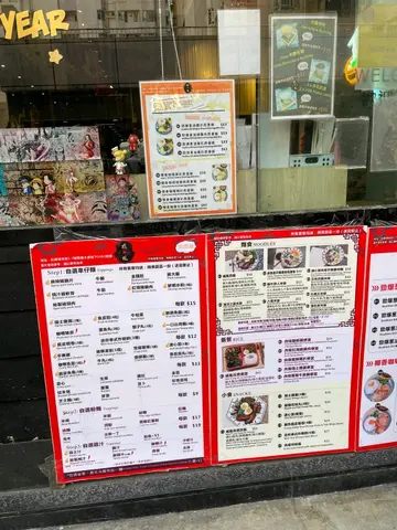 My friend and I finally visited this cart noodle resto in Hung Hom that I had bookmarked for some time, especially because of their offer of complimentary dessert..I ordered for Cart Noodles with Two Ingredients, choosing pork blood curd and pork intestine as toppings, along with flat potato noodles and special chili sauce of medium spiciness. The portions were generous, with the pork blood curd being flavorful and succulent, and the well-marinated and fresh intestine lacking any unpleasant odor. The flat noodles absorbed the spicy sauce well, enhancing the overall taste. My friend ordered Cart Noodles with Four Ingredients, selecting spicy pork belly slice, shrimp roll in tofu wrap, Chinese cabbage and braised Shiitake mushroom, paired with flat potato noodles and a combination of satay and special chili sauces. Each set included a complimentary dessert. I selected the Crème Brulée by adding HKD5, while my friend chose the Serradura Pudding. The Crème Brulée had a sugary topping, offering a smooth texture with a rich egg aroma and a hint of sweetness. Her Serradura Pudding featured well-balanced layers of cream and Marie biscuit crumbs..The restaurant was bustling with a long queue, so we arrived at noon (their opening time) to secure seats. They got cute figures for decorations. The complimentary dessert was a delightful touch, sure to brighten anyone's day.…查看更多