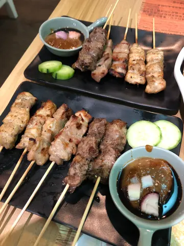 依間鋪頭係我中學時間就已經係到以前差不多每星期都會食一次不過上左大學畢業後就少左黎食今次黎係回味下中學既回憶依到裝修同以前唔同左但食物味道無咩點變都係唔錯可能係因為有中學情意結😂今次叫左個燒雞 炒菜同串燒燒雞有d似咖哩既味道食落幾香口炒菜就同一般泰國餐廳炒通菜差唔多有獲氣幾好食至於串燒 個汁先係靈魂所在有d似豉油加沙嗲醬咁鹹鹹香香配上三款唔同既肉各有風味