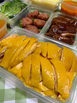 一家人食飯又唔想煮,近近地去又新街間孖寶買外賣先,五點幾去到已經全店滿座,仲有幾個人等緊外賣,十分熱鬧。點左一個孖寶4人餐,另再加左半隻燻蹄,家人愛肉嘛,全部點哂啲啖啖肉嘅餸😆⭐無骨海南雞個餐可選海南雞或口水雞,揀左要海南雞🐔,一隻雞放得滿滿的,已去骨方便食。雞件嫩滑鮮味,雞皮下唔多脂肪,啖啖肉好正,再點下醬料更鮮味🤤⭐蠔油時菜一盒生菜份量足。⭐魚香煎肉餅煎得脆口,咬落真係有鹹魚香喎,幾好食。⭐梅菜扣肉醬汁調味唔錯,扣肉半肥瘦炆得入味,梅菜吸左醬汁同豬油超好味,淨係梅菜都可以食幾碗飯,下飯之選😆⭐狀元燻蹄另加的半隻燻蹄,同樣炆得好入味,咬落彈牙好有膠原感,正😋⭐靚湯跟餐的例湯南瓜雞腳湯,好鮮甜,一飲就知係無味精靚湯。⭐油飯飯可選油飯或白飯,揀左四盒都係油飯,入口香口,好味😋一家大細食啱啱好,呢個餐真抵食😋…查看更多