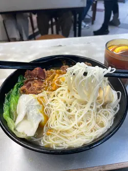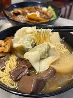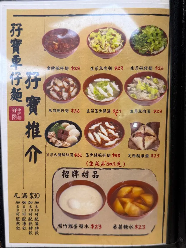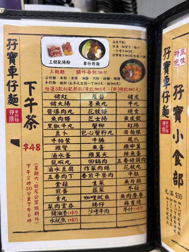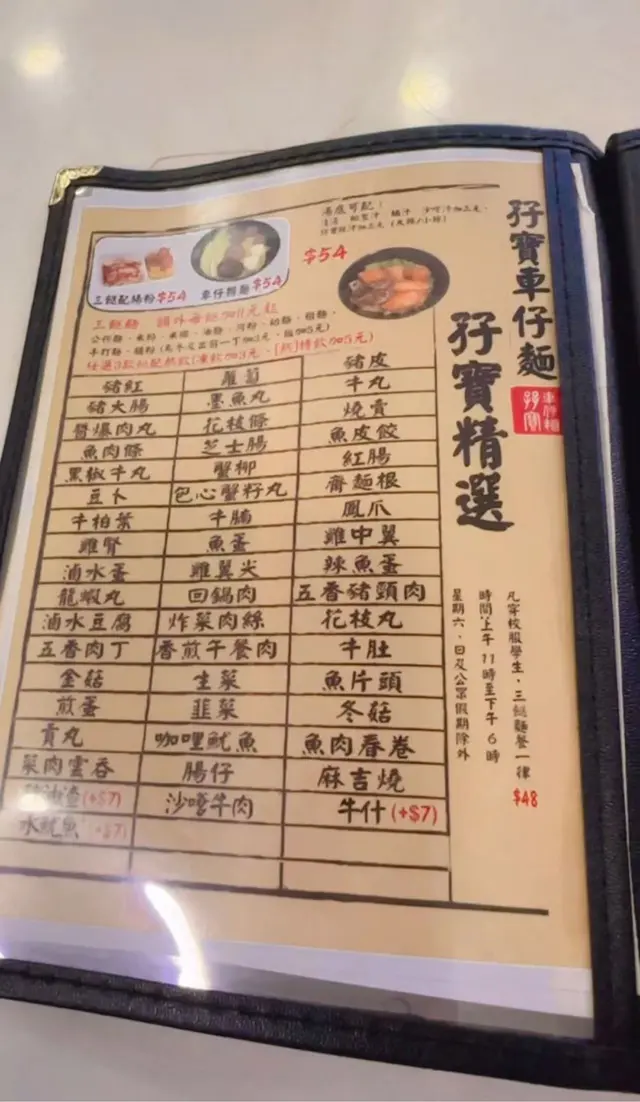 講起兒時回憶,相信大家細個嘅時候都留咗唔少腳毛喺葵涌廣場,估唔到而家長大咗之後,都係對呢種情懷念念不忘,今日喺公司做嘢做到壓力爆煲,好想食返啲comfort food,然後第一間諗到嘅餐廳就係葵涌廣場嘅呢間孖寶車仔麵,平時多數嚟都會食佢嘅魚蛋同埋生菜魚肉,但係今日就決定咗叫車仔麵。呢度性價比好高,三餸車仔麵都只係$54 ,如果想要四餸,加多$11就可以,推介叫呢度嘅秘製汁,味道濃郁順滑,而呢度嘅米粉亦都好好食,口感一流,完全唔係次等貨嘅米粉,至於啲餸,我就要咗魚片頭、牛腩同埋菜肉雲吞,最鍾意呢度嘅菜肉雲吞包得好紮實,而且好大隻,食起上嚟有幸福嘅感覺。屋企人叫嘅餸同我唔一樣,但係確實呢度嘅滷水豆腐同埋魚皮餃都係好出色,今次試埋豬頸肉都覺得唔錯。最好就係呢度會包飲品,熱檸茶都有好多片檸檬,絕對唔手軟食完之後即刻覺得有返晒精神。…查看更多