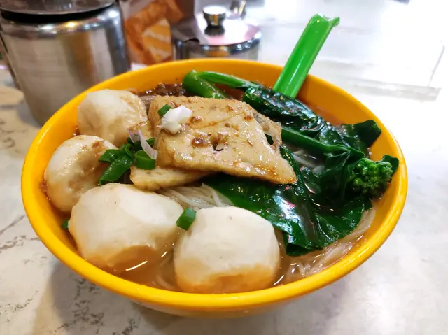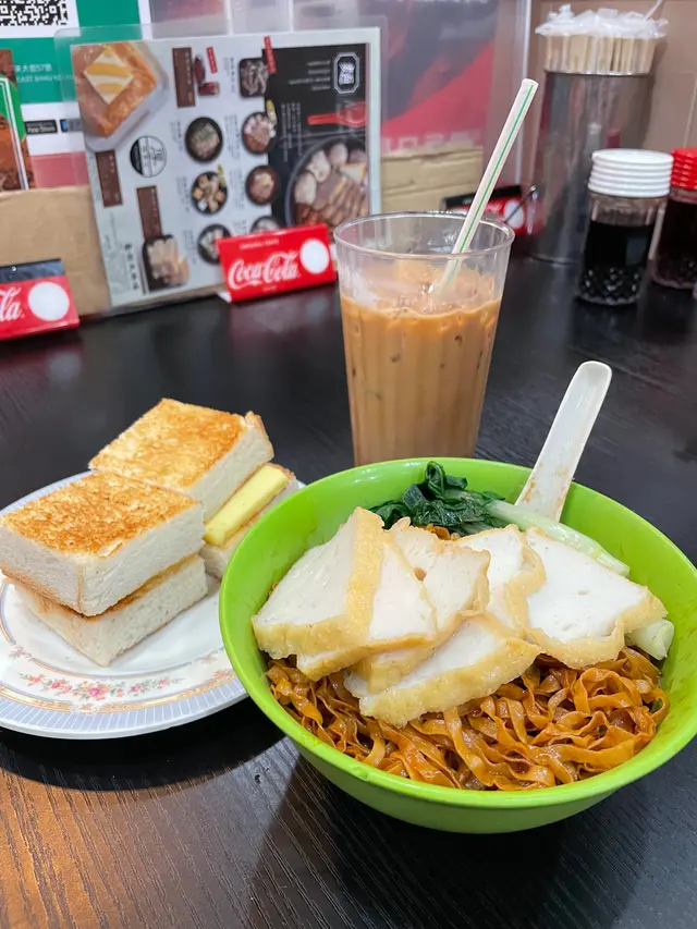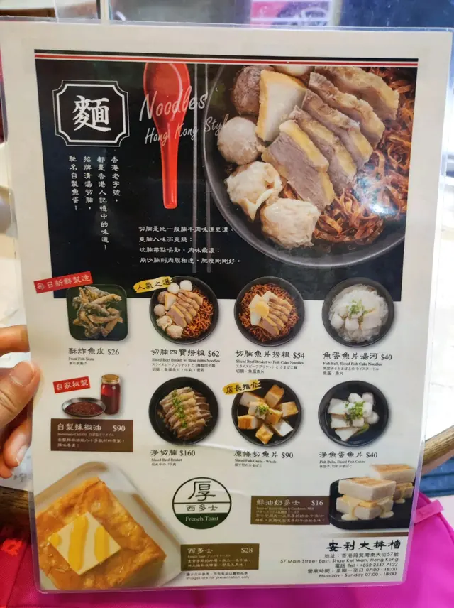 每次去筲箕灣,都必食安利,但係每次都唔記得自己食過邊間, 一條街有兩間,一間排隊,一間可以攞飛,亂衝亂撞,去左間攞飛既,等左約10分鐘,有位,不過坐門口點了切腩魚片撈粗$54🍜粗麵麵質十分好,彈牙,切腩唔肥,魚片依舊美味,最出色就係個汁,好好味,完全食唔出佢點樣整,有啲似腩汁加豉油,配埋古法辣椒油,呢個撈麵真係無敵魚蛋魚片米粉加腩汁$42🍜,凍檸茶$22🥤呢個睇落去普通嘅魚蛋粉,一啲都唔普通,呢個兒時既味道,有錢都食唔到,加埋啲腩汁,不得了! 腩汁味香濃,魚蛋算係真材實料,配埋個舊式米粉,必試古法辣椒油,有茶味既檸茶,要encore! 💯總結: 茶記魚蛋粉來講,唔算好實惠,但勝在食到兒時回憶,已經是無價💰! 員工有禮貌,低讚下次會試招牌牛油多士!查看更多
