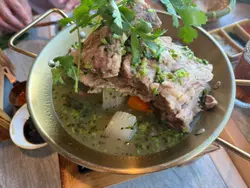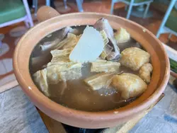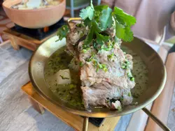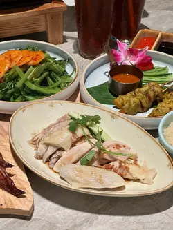 多年前,此店名曰<少爺>!最有印象是荔枝紅茶和海南雞。現在少爺變做Antie了!來都來了~所以改選擇其他美食。就坐後,職員即上紅茶及炸蝦片小食。 朋友點選小食,湯,雞,肉,菜,多士&飲品,唔洗諗唔洗煩,解決選擇困難症。下單後,一邊嘆荔枝紅茶,一邊等美食來到。瑪萊沙嗲串燒 馬拉的沙嗲串燒很有名,這個橙紅色沙嗲醬,以鹹辣為主調,帶微酸,花生醬不明顯。而豬肉有香茅咖哩等底味,單食也ok!伴碟的青瓜也不浪費,可沾醬享用。香茅椰糖烤雞全翼 雞翼表面有絲絲香茅,淡淡的香茅味跟椰糖一起,沒有蓋過雞翼原味。星洲胡椒肉骨茶 淺黃色bak Ku Teh帶微微的中藥味,跟KL濃厚藥材味啡色湯底有明顯分別。胡椒味不濃烈。豆卜腐竹蘿蔔墊底,排骨超過五條,肉質不硬容易咬。因肉骨茶不太鹹,排骨沾黑醬油,鹹味剛剛好。森巴蝦仁通菜 sambar魷魚甕菜,是彼方美食。 現在改用蝦仁也ok。淺色森巴醬辣椒味較濃,蝦味不明顯。有了森巴的鹹香辣,通菜無需額外加調味。少爺海南雞飯 <例牌> 雞湯雞肉雞飯三色醬。 雞湯清甜,蘿蔔粒軟綿綿,吸盡雞湯精華。 啞光雞胸肉仍是滑滑,這個海南雞合格了! 雞件淋上香葱豉油,帶來特別的香氣,雞肉沾上三色醬,酸辣甘香。雞飯又是另一亮點!一般的雞飯是油膩,這碗雞飯是乾爽的,還透著淡淡的香料味~班蘭?雞油香?雞湯精華?有乾爽的雞飯,才可襯托出海南雞的滋味。招牌火山排骨 排骨配泰國青BB酸酸辣辣的海鮮醬,很醒胃。一邊加熱一邊淋上青色湯底,三段大排骨,不是Baby Rib,以刀叉分件時,要比手力。班蘭咖椰多士 馬拉美食kaya多~青綠色班蘭kaya醬,夾著牛油片。多士 = 一塊白色方包橫向薄切,刀功真犀利!三件長條形多士,剛好是嘴巴的濶度。享用之時要大啖咬,以免班蘭醬滴下來。幸好職員早已提供濕紙巾。飲品 TraChaMue泰茶類特飲可以少冰,但不能少甜。因為糖,已跟手標茶底混在一起了!手標正宗泰式奶茶 泰國常見的紅卜卜茶底,表面雖有一層奶泡,泰茶底依然是勁甜。香水檸檬泰式冰茶 表面那層泡泡,是爆打檸檬的証明。檸茶底跟泰式紅茶底同樣的甜,同樣的茶香。可是這泰檸茶混著厚皮香水檸檬,彼方不會有的!離去之時,才發現有二人套餐。…查看更多