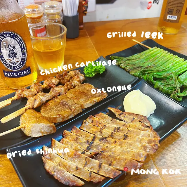 旺角真係超多餐廳,各國各種類的食物、應有盡有。逛街逛都攰,又到晚餐時間,想坐低傾吓偈,啤啤佢,又唔想食太飽。揀咗呢間串燒,見招牌寫住happy hour時段、$76 無限任飲Sapporo 生啤及其他無酒精飲品🍺🥤正!!好多唔同種類嘅串燒選擇,燒魚干、生蠔、回憶魷魚仔、墨魚滑、鯖魚、龍脷柳、黃立倉⋯⋯等等。嘩😳平時沒諗住燒烤的呢度menu都有。全部都燒得好好食👍菇類多汁,肉味香濃。-皇牌牛舌-椒鹽多春魚-蒜蓉燒扇貝-惹味燒雞子-蒜蓉牛油焗金菇雜菌-孜然羊肉串-牛小排-芝士煙肉烤大蘑菇-雞軟骨串…查看更多