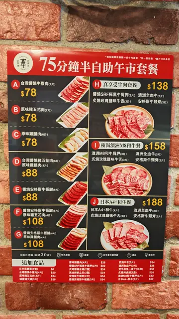 最近同朋友去左荃灣一間燒肉店食放題😝今次食日本A4+和牛饗宴🙂↕️店舖提供高CP值的肉類和海鮮~享受更高品質的美食🤤此外特別注重顧客的用餐體驗。「極.厚切檸檬牛舌」會配備刀叉和沙漏,增添儀式感😜日本A4+和牛:每片和牛經手工精修,運用薄切技術保留最佳口感~手工安格斯牛小排:事前以人手修整脂肪和筋膜,保留肉質的原汁原味。極厚切檸檬牛舌:招牌菜式,每條牛舌經過六小時的慢煮,口感極佳。安平赤魚一夜干:選用新鮮赤魚,經鹽醃製並風乾一夜,保留魚肉的細嫩多汁。炙烤霸王蝦 (鹽蔥·黑蒜油):安平大廚特製醃料,慢熬黑蒜橄欖油、台灣傳統清香鹽蔥,風味獨特。炙烤白鱔配海苔:精選高品質白鱔,經人手清理,確保肉質潔淨細嫩。安平慢熬清雞湯:選用新鮮雞與各種高質食材,慢火熬煮三小時,湯頭鮮美😝🌸 安平櫻花蝦飯此款飯品搭配櫻花蝦、香蔥、海苔及秘製滷水汁,配料分量可依個人口味自由調整,讓每位顧客都能調配出獨一無二的拌飯🤪🥣 十二味醬專區~提供多款醬汁,讓您細味台燒的醬汁情懷😂- 重點推薦:招牌黃金醬、薑味可樂醬、香水檸檬汁、海鮮五味醬、香辣烤肉辣椒粉- 其他醬汁:蒜味鹽醬、極上醬油、沙茶醬、台灣甜辣醬、手切蒜片、安平辣椒醬、泰式海鮮醬、椒麻口水醬、柚子醬、鹽蔥醬、芥末😑…查看更多