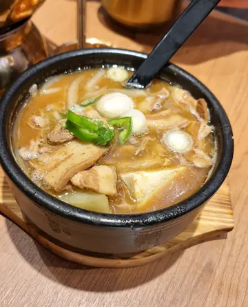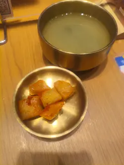 第二次幫襯員工友善有禮貌 服務幾好由其是樓面女經理(應該係經理或店長 冇問 不過見佢負責分配工作比員工)食物方面試左金槍魚拌飯同大醬排骨湯另外有泡菜及海帶湯任食泡菜味道有少少怪 同埋偏酸大醬湯較為失望因為係頗為簡單既韓國料理只要調味同食材ok就好易煮得好食但係呢間鋪既大醬湯似係中菜既味道難以形容湯好少 第一下擺隻匙羹落去有啲嚇親😂個碗好淺不過後來發現係足夠 因為好咸 唔可以齋飲 一定要配飯食最後就係拌飯 唔係有驚喜既好食 但係以價錢黎講係合格以上建議大家想試就試拌飯湯真係唔太推薦會再幫襯的但唔會再試湯